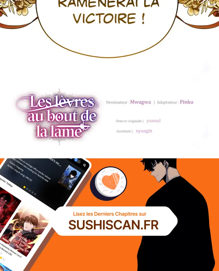 Lisez le dernier manga Les lèvres au bout de la lame Chapitre 82 sur SushiScan. Le manga Les lèvres au bout de la lame est toujours mis à jour sur SushiScan. N'oubliez pas de lire les autres mises à jour de manga. Une liste de collections de manga SushiScan se trouve dans le menu Liste de manga.