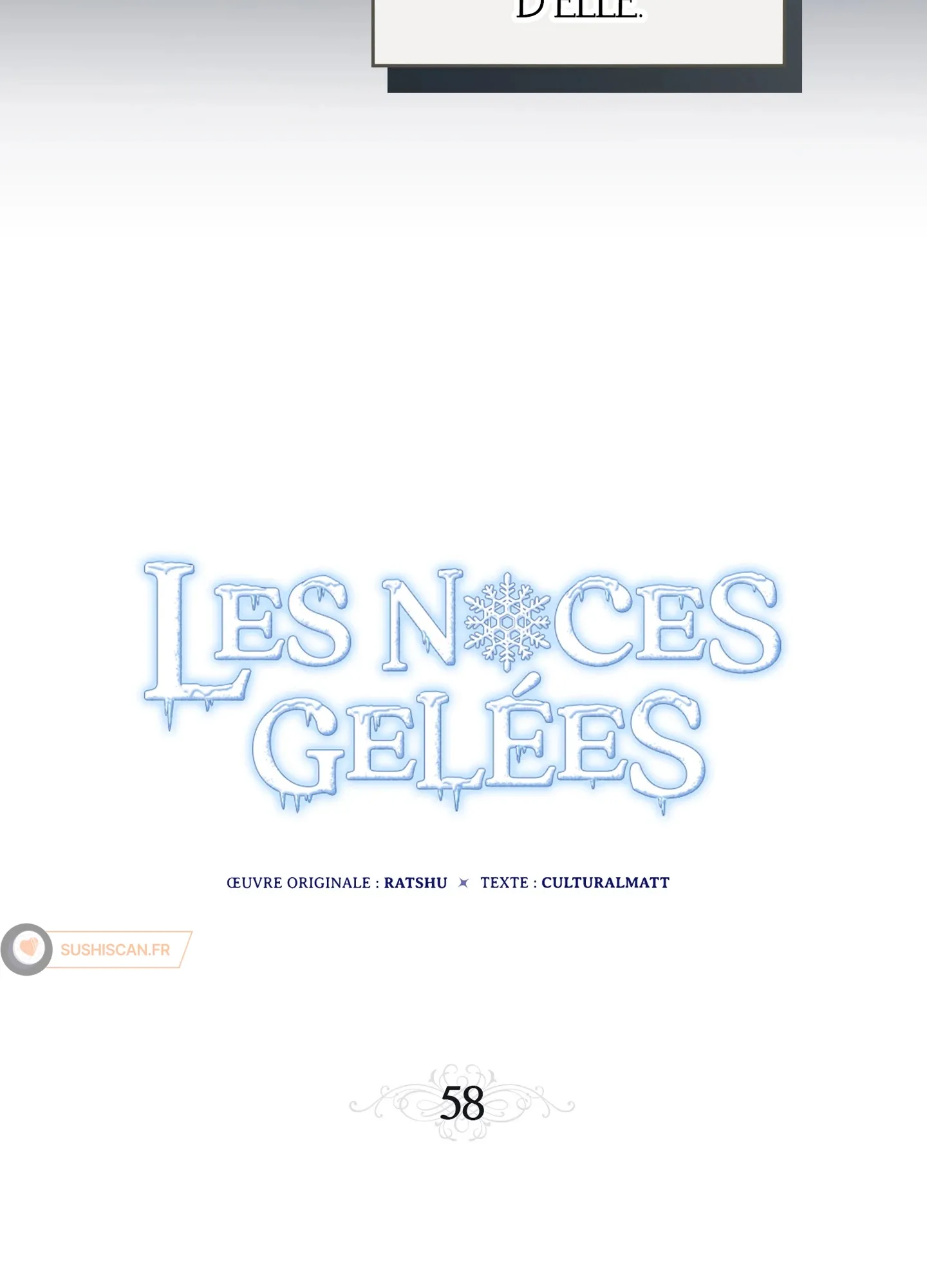 Lisez le dernier manga Les Noces gelées Chapitre 58 sur SushiScan. Le manga Les Noces gelées est toujours mis à jour sur SushiScan. N'oubliez pas de lire les autres mises à jour de manga. Une liste de collections de manga SushiScan se trouve dans le menu Liste de manga.