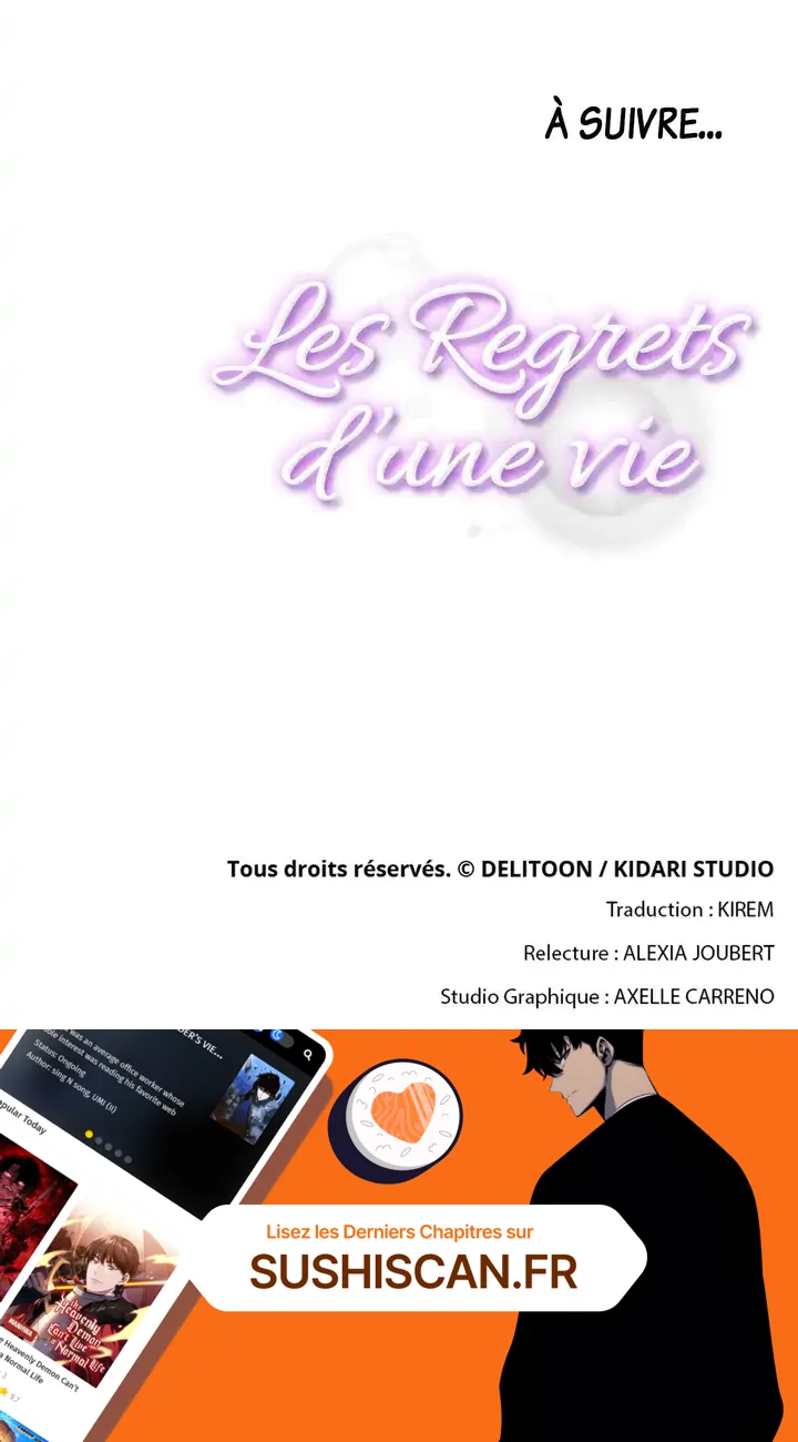 Lisez le dernier manga Les regrets d’une vie Chapitre 27 sur SushiScan. Le manga Les regrets d’une vie est toujours mis à jour sur SushiScan. N'oubliez pas de lire les autres mises à jour de manga. Une liste de collections de manga SushiScan se trouve dans le menu Liste de manga.