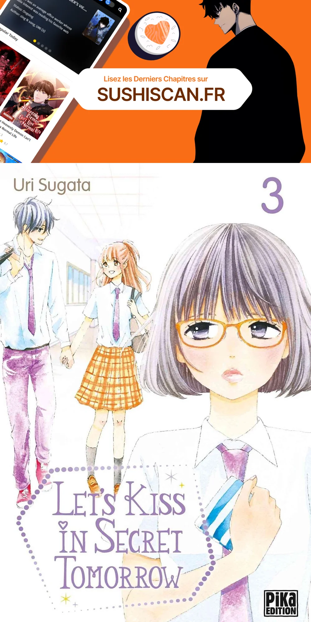 Lisez le dernier manga Let’s Kiss in Secret Tomorrow Volume 3 sur SushiScan. Le manga Let’s Kiss in Secret Tomorrow est toujours mis à jour sur SushiScan. N'oubliez pas de lire les autres mises à jour de manga. Une liste de collections de manga SushiScan se trouve dans le menu Liste de manga.