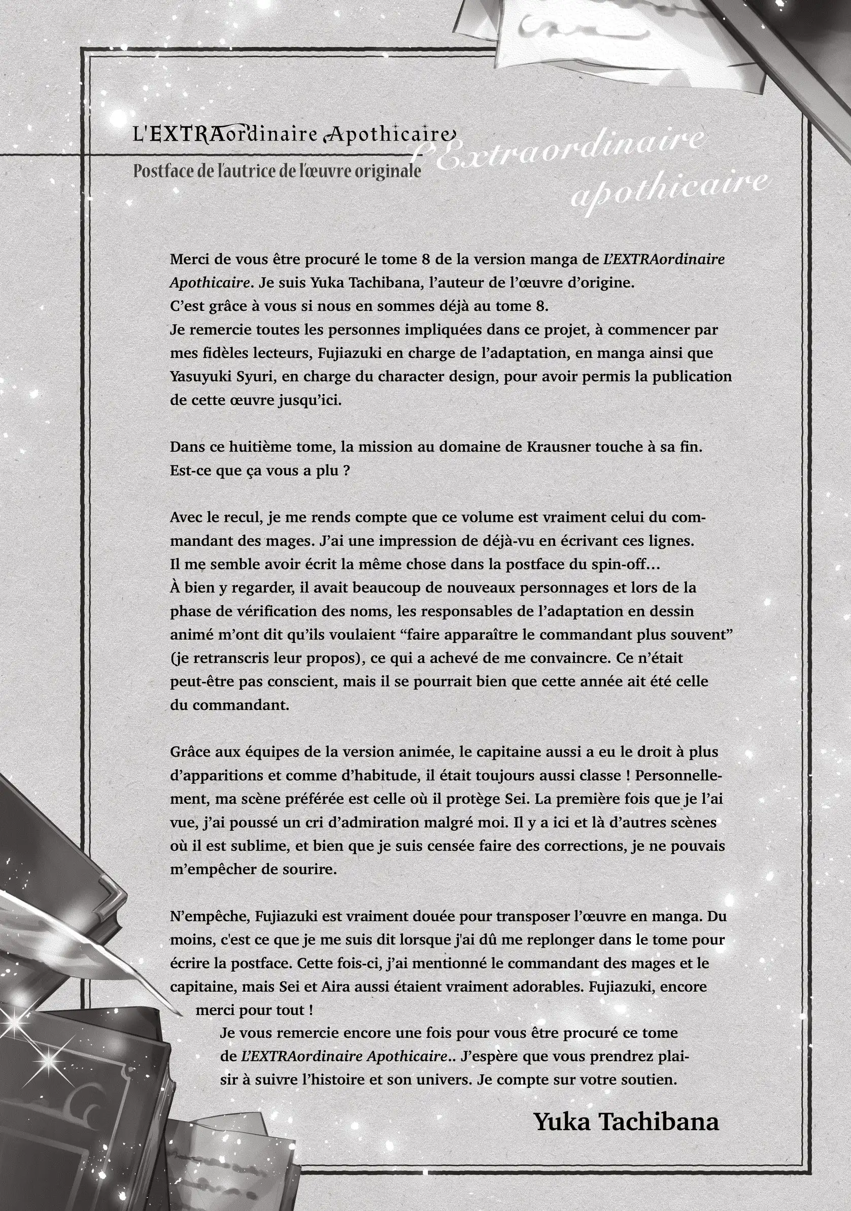 Lisez le dernier manga L’EXTRAordinaire Apothicaire Tome 8 sur SushiScan. Le manga L’EXTRAordinaire Apothicaire est toujours mis à jour sur SushiScan. N'oubliez pas de lire les autres mises à jour de manga. Une liste de collections de manga SushiScan se trouve dans le menu Liste de manga.