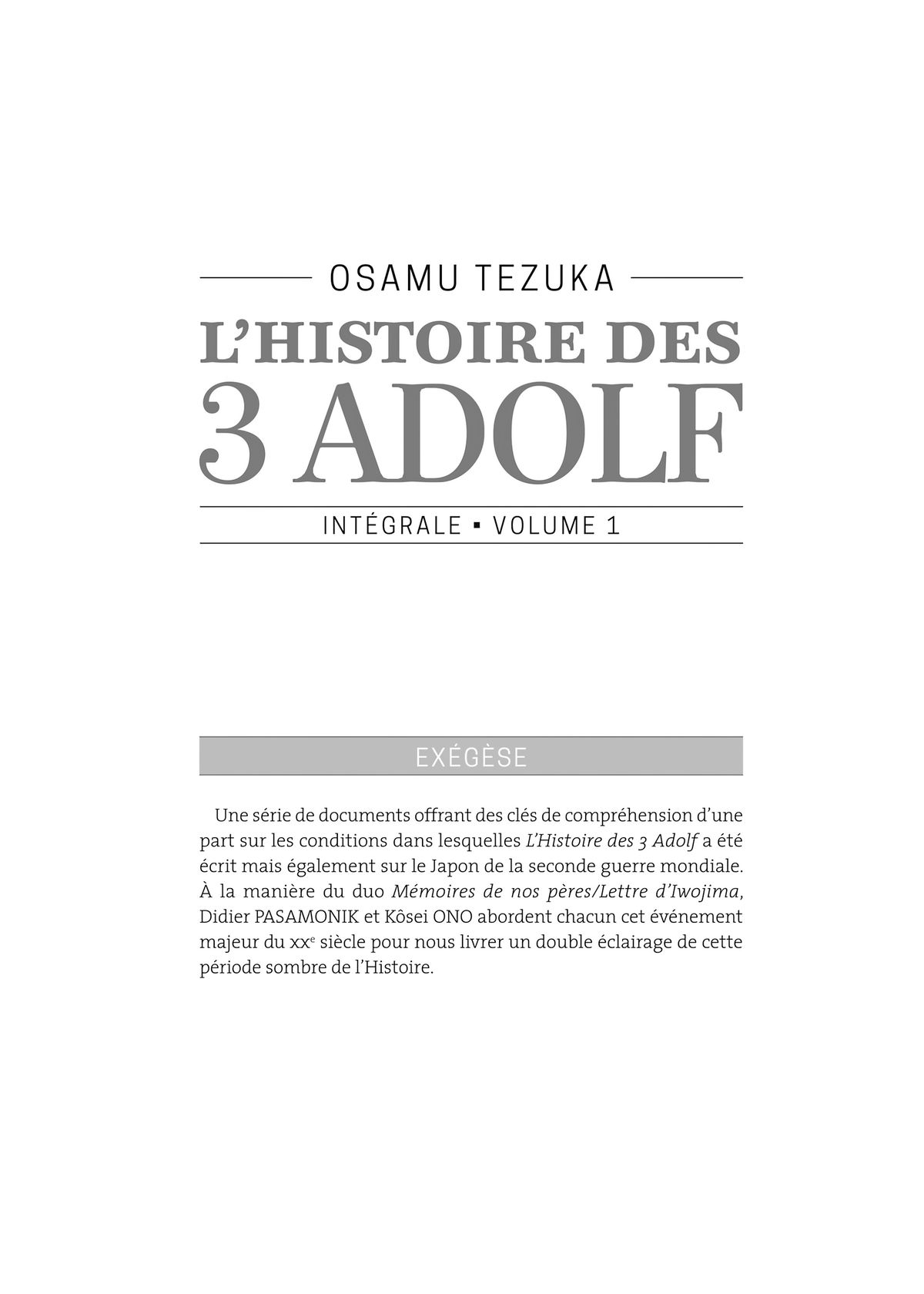 Lisez le dernier manga L’Histoire des 3 Adolf – Édition prestige Tome 1 sur SushiScan. Le manga L’Histoire des 3 Adolf – Édition prestige est toujours mis à jour sur SushiScan. N'oubliez pas de lire les autres mises à jour de manga. Une liste de collections de manga SushiScan se trouve dans le menu Liste de manga.