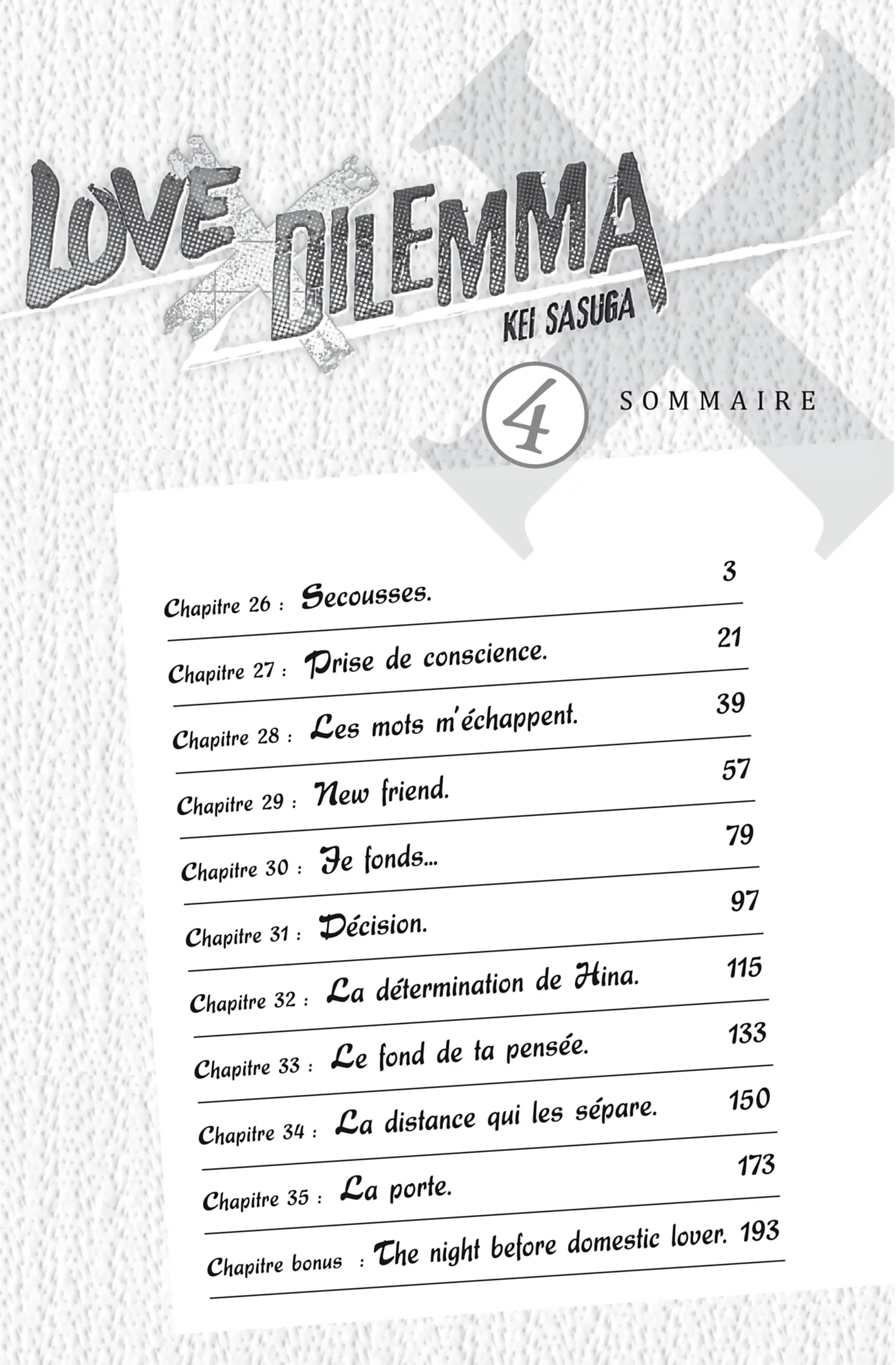 Lisez le dernier manga Love × Dilemma Tome 4 sur SushiScan. Le manga Love × Dilemma est toujours mis à jour sur SushiScan. N'oubliez pas de lire les autres mises à jour de manga. Une liste de collections de manga SushiScan se trouve dans le menu Liste de manga.