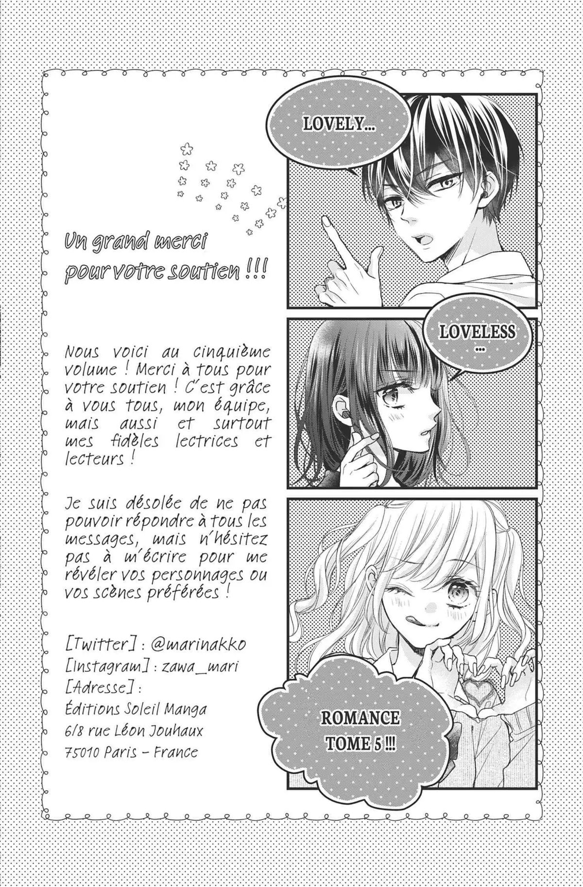 Lisez le dernier manga Lovely Loveless Romance Tome 5 sur SushiScan. Le manga Lovely Loveless Romance est toujours mis à jour sur SushiScan. N'oubliez pas de lire les autres mises à jour de manga. Une liste de collections de manga SushiScan se trouve dans le menu Liste de manga.