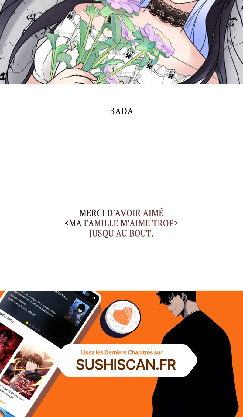 Lisez le dernier manga Ma famille m’aime trop Chapitre 105 sur SushiScan. Le manga Ma famille m’aime trop est toujours mis à jour sur SushiScan. N'oubliez pas de lire les autres mises à jour de manga. Une liste de collections de manga SushiScan se trouve dans le menu Liste de manga.