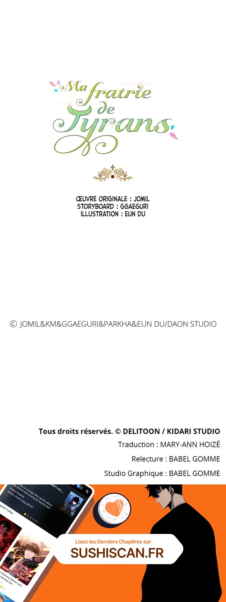 Lisez le dernier manga Ma fratrie de tyrans Chapitre 109 sur SushiScan. Le manga Ma fratrie de tyrans est toujours mis à jour sur SushiScan. N'oubliez pas de lire les autres mises à jour de manga. Une liste de collections de manga SushiScan se trouve dans le menu Liste de manga.