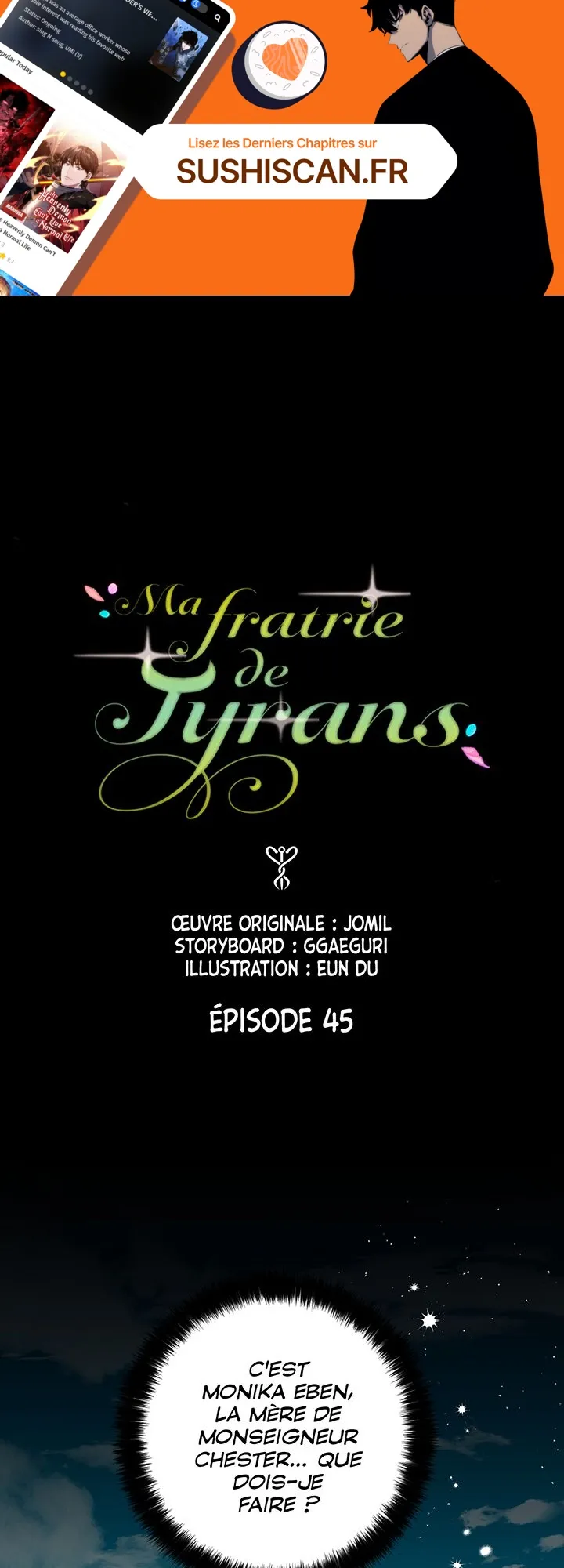 Lisez le dernier manga Ma fratrie de tyrans Chapitre 45 sur SushiScan. Le manga Ma fratrie de tyrans est toujours mis à jour sur SushiScan. N'oubliez pas de lire les autres mises à jour de manga. Une liste de collections de manga SushiScan se trouve dans le menu Liste de manga.