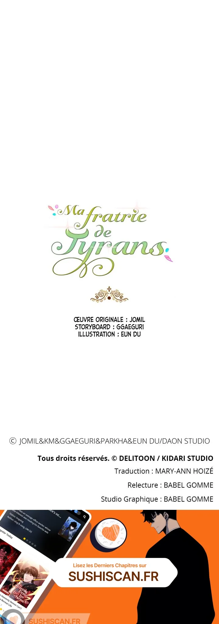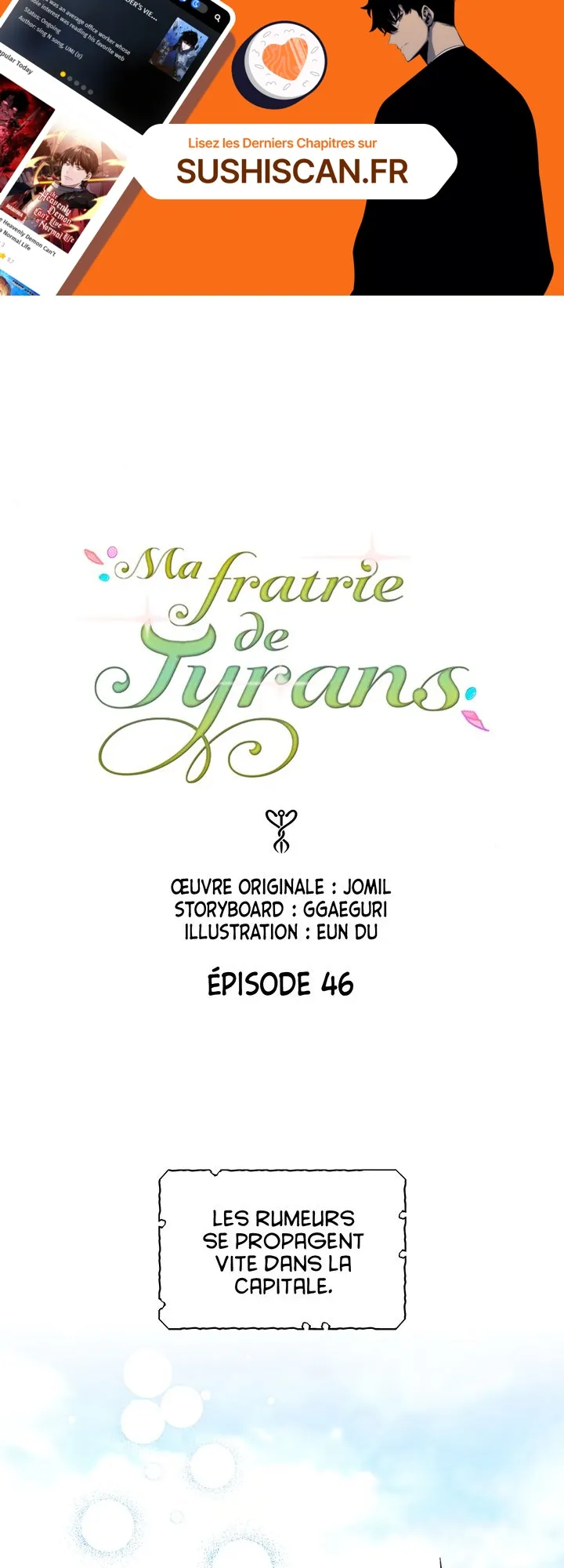 Lisez le dernier manga Ma fratrie de tyrans Chapitre 46 sur SushiScan. Le manga Ma fratrie de tyrans est toujours mis à jour sur SushiScan. N'oubliez pas de lire les autres mises à jour de manga. Une liste de collections de manga SushiScan se trouve dans le menu Liste de manga.