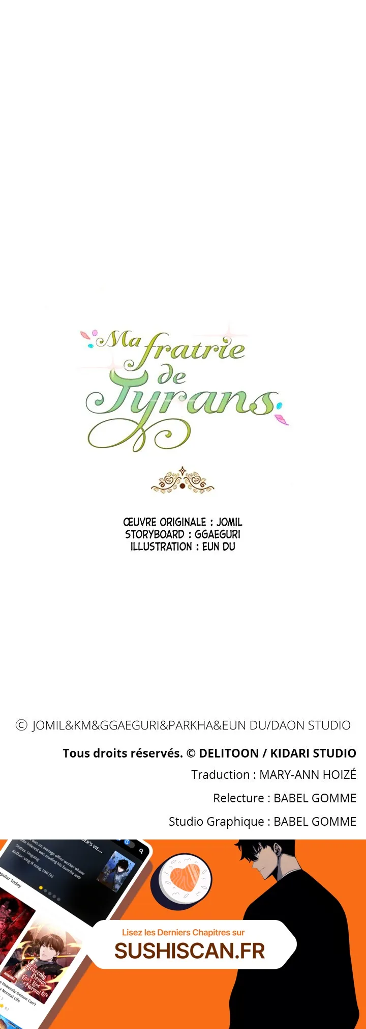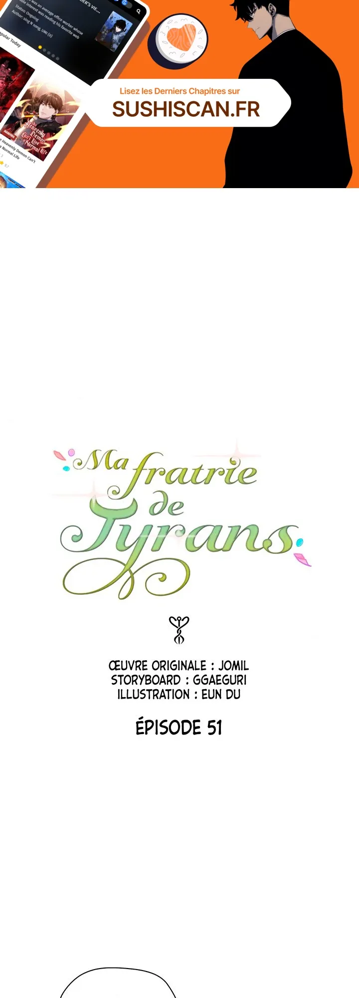 Lisez le dernier manga Ma fratrie de tyrans Chapitre 51 sur SushiScan. Le manga Ma fratrie de tyrans est toujours mis à jour sur SushiScan. N'oubliez pas de lire les autres mises à jour de manga. Une liste de collections de manga SushiScan se trouve dans le menu Liste de manga.
