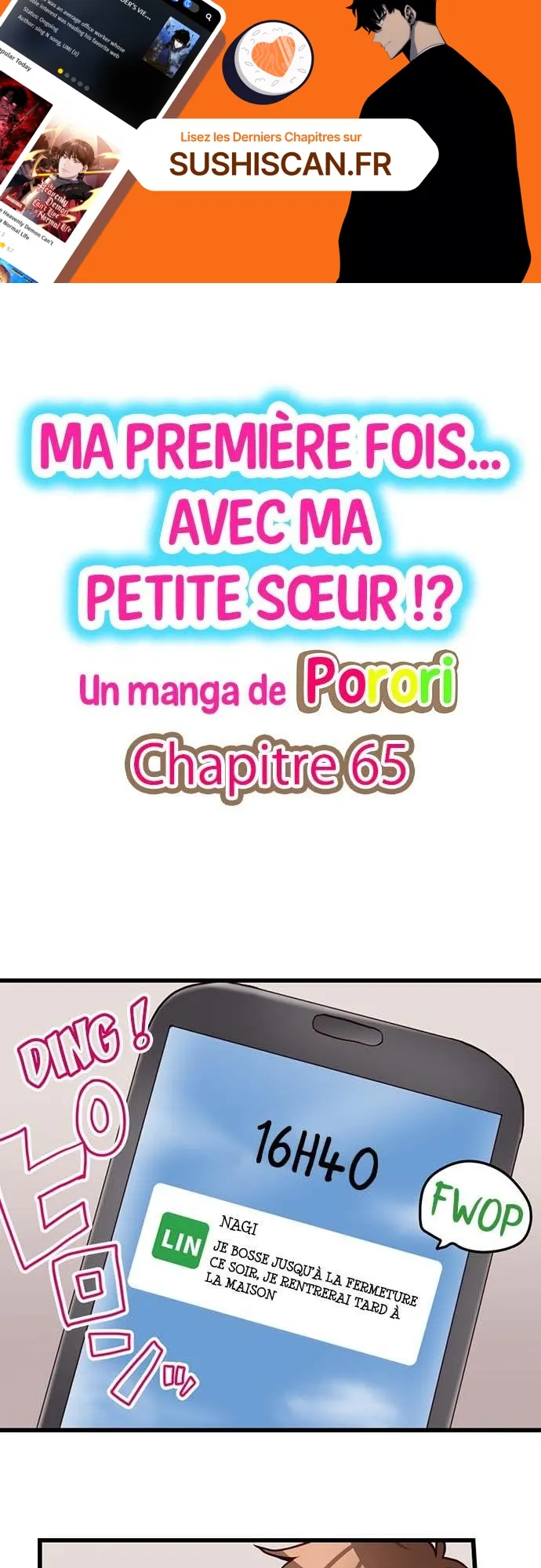 Lisez le dernier manga Ma première fois… avec ma petite soeur !? Chapitre 65 sur SushiScan. Le manga Ma première fois… avec ma petite soeur !? est toujours mis à jour sur SushiScan. N'oubliez pas de lire les autres mises à jour de manga. Une liste de collections de manga SushiScan se trouve dans le menu Liste de manga.