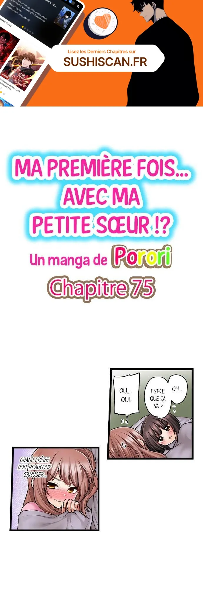 Lisez le dernier manga Ma première fois… avec ma petite soeur !? Chapitre 75 sur SushiScan. Le manga Ma première fois… avec ma petite soeur !? est toujours mis à jour sur SushiScan. N'oubliez pas de lire les autres mises à jour de manga. Une liste de collections de manga SushiScan se trouve dans le menu Liste de manga.