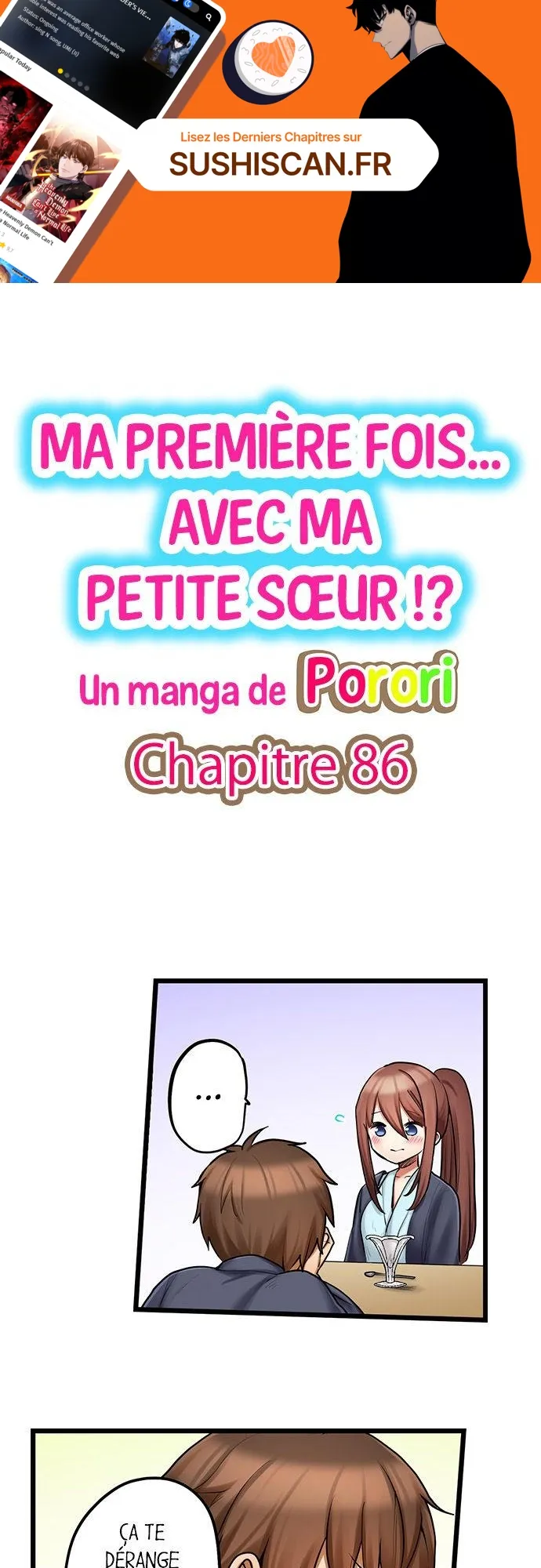 Lisez le dernier manga Ma première fois… avec ma petite soeur !? Chapitre 86 sur SushiScan. Le manga Ma première fois… avec ma petite soeur !? est toujours mis à jour sur SushiScan. N'oubliez pas de lire les autres mises à jour de manga. Une liste de collections de manga SushiScan se trouve dans le menu Liste de manga.