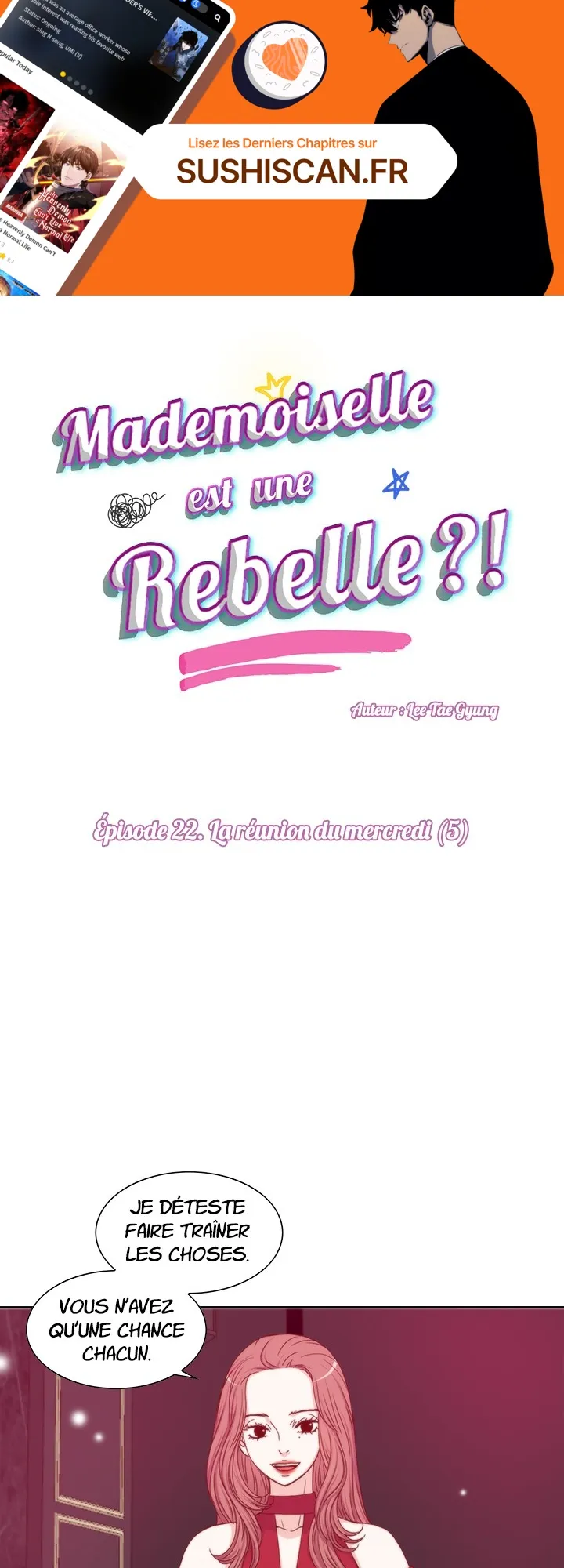 Lisez le dernier manga Mademoiselle est une rebelle ?! Chapitre 22 sur SushiScan. Le manga Mademoiselle est une rebelle ?! est toujours mis à jour sur SushiScan. N'oubliez pas de lire les autres mises à jour de manga. Une liste de collections de manga SushiScan se trouve dans le menu Liste de manga.