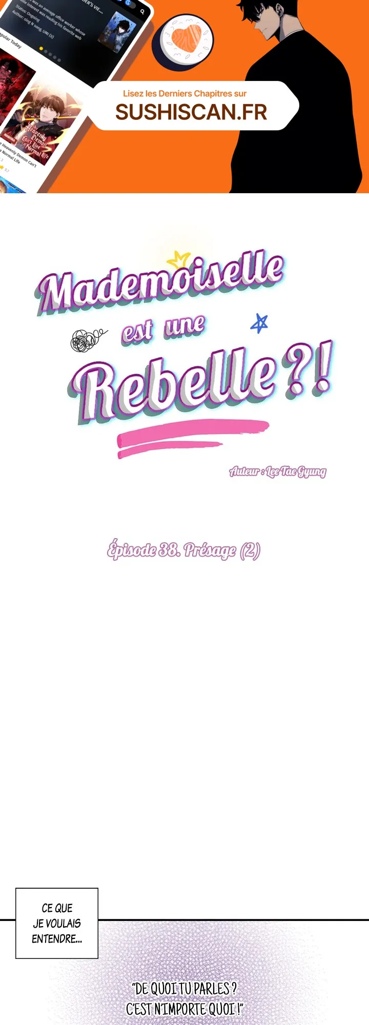 Lisez le dernier manga Mademoiselle est une rebelle ?! Chapitre 38 sur SushiScan. Le manga Mademoiselle est une rebelle ?! est toujours mis à jour sur SushiScan. N'oubliez pas de lire les autres mises à jour de manga. Une liste de collections de manga SushiScan se trouve dans le menu Liste de manga.