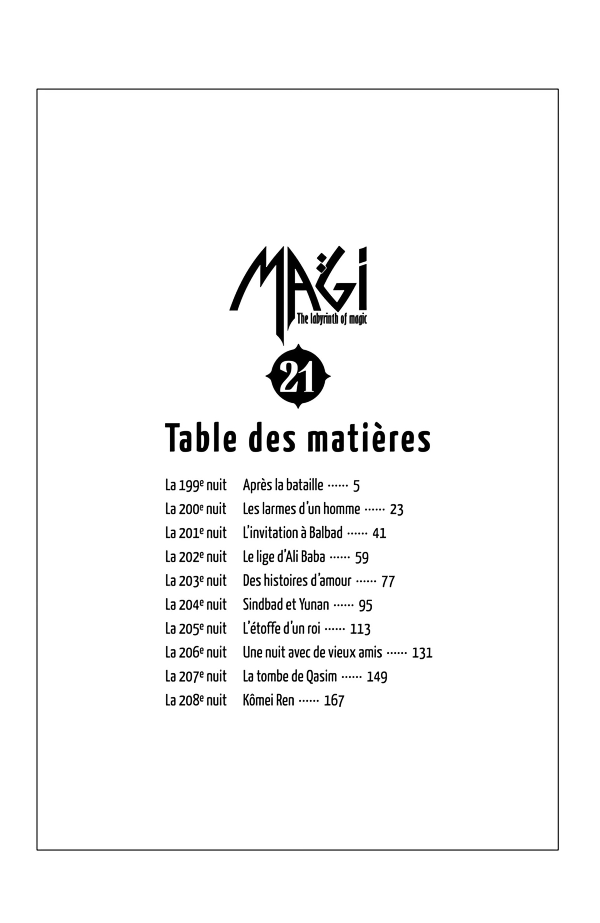 Lisez le dernier manga Magi – The Labyrinth of Magic Volume 21 sur SushiScan. Le manga Magi – The Labyrinth of Magic est toujours mis à jour sur SushiScan. N'oubliez pas de lire les autres mises à jour de manga. Une liste de collections de manga SushiScan se trouve dans le menu Liste de manga.