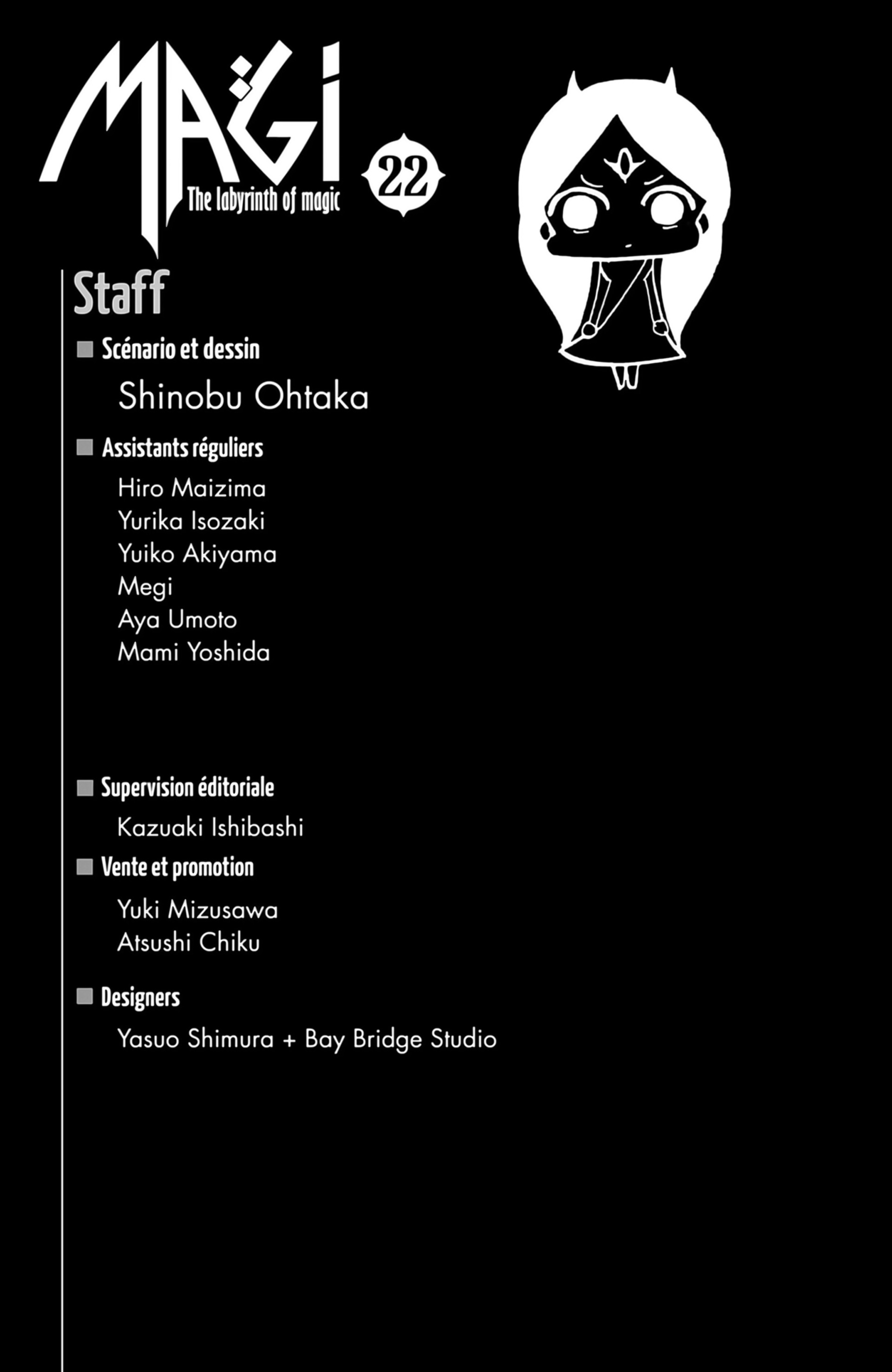 Lisez le dernier manga Magi – The Labyrinth of Magic Volume 22 sur SushiScan. Le manga Magi – The Labyrinth of Magic est toujours mis à jour sur SushiScan. N'oubliez pas de lire les autres mises à jour de manga. Une liste de collections de manga SushiScan se trouve dans le menu Liste de manga.