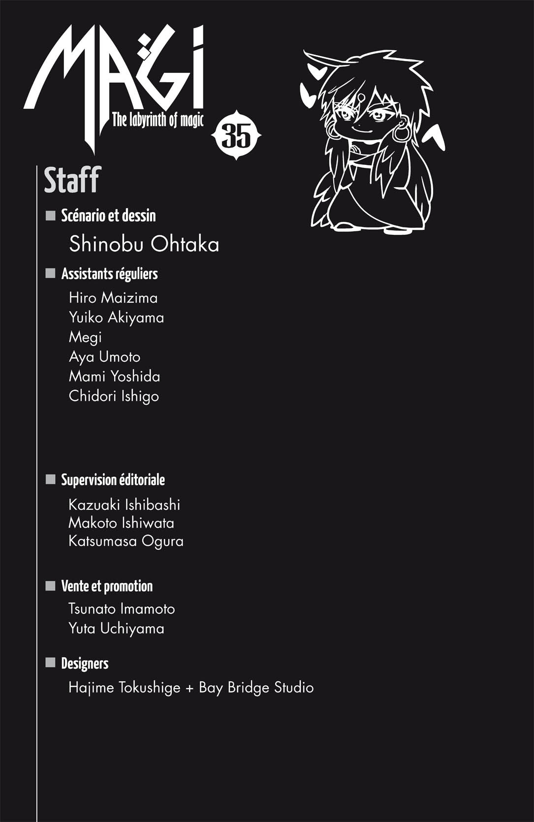 Lisez le dernier manga Magi – The Labyrinth of Magic Volume 35 sur SushiScan. Le manga Magi – The Labyrinth of Magic est toujours mis à jour sur SushiScan. N'oubliez pas de lire les autres mises à jour de manga. Une liste de collections de manga SushiScan se trouve dans le menu Liste de manga.