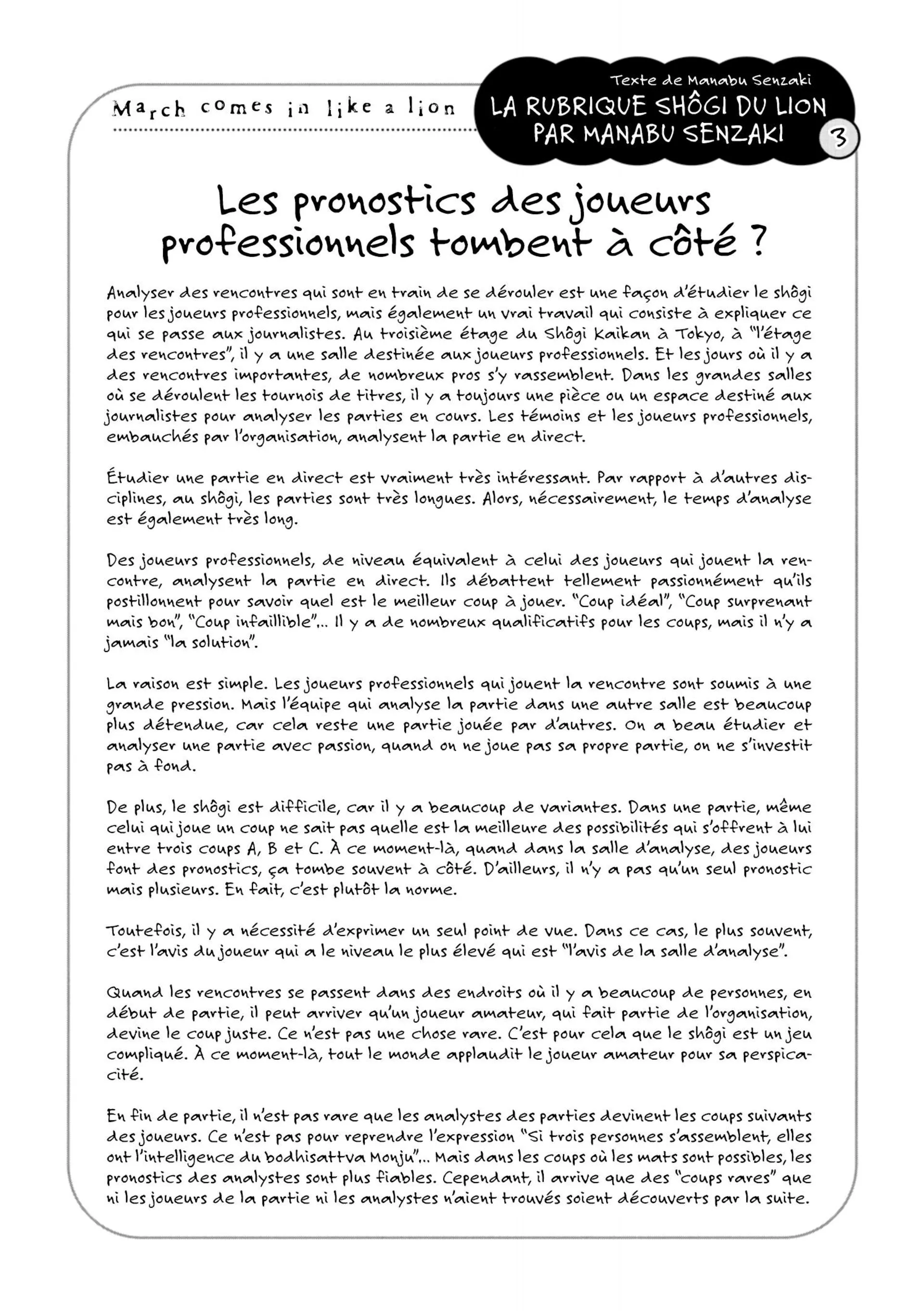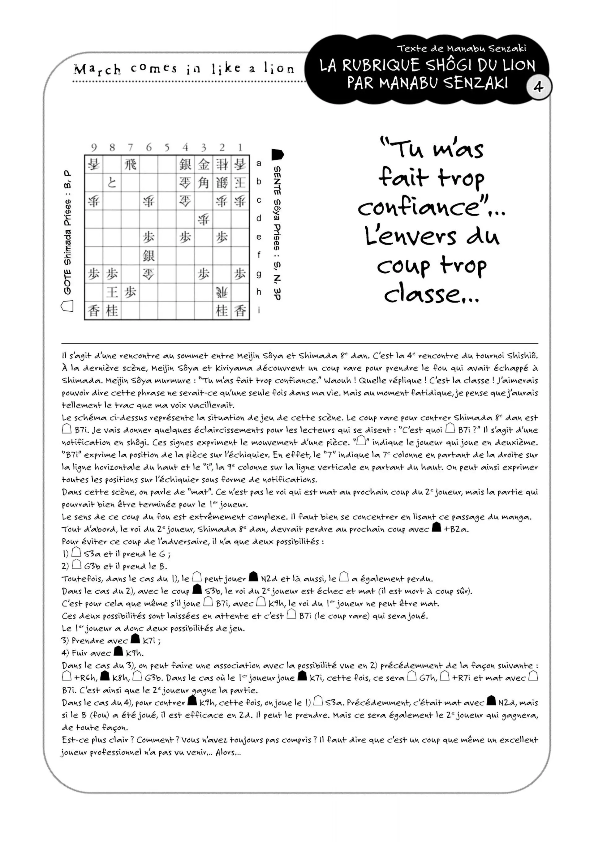 Lisez le dernier manga March comes in like a lion Tome 4 sur SushiScan. Le manga March comes in like a lion est toujours mis à jour sur SushiScan. N'oubliez pas de lire les autres mises à jour de manga. Une liste de collections de manga SushiScan se trouve dans le menu Liste de manga.