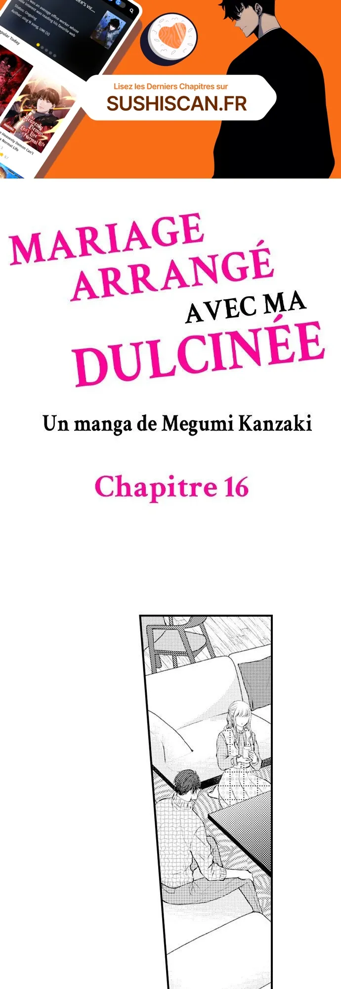 Lisez le dernier manga Mariage arrangé avec ma dulcinée Chapitre 16 sur SushiScan. Le manga Mariage arrangé avec ma dulcinée est toujours mis à jour sur SushiScan. N'oubliez pas de lire les autres mises à jour de manga. Une liste de collections de manga SushiScan se trouve dans le menu Liste de manga.