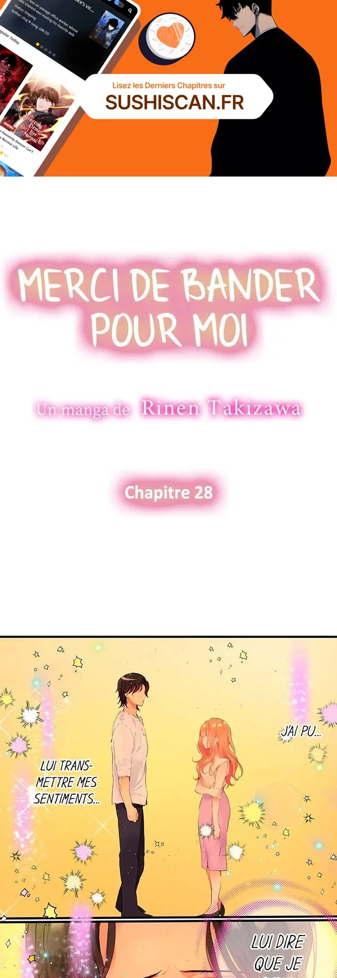 Lisez le dernier manga Merci de bander pour moi Chapitre 28 sur SushiScan. Le manga Merci de bander pour moi est toujours mis à jour sur SushiScan. N'oubliez pas de lire les autres mises à jour de manga. Une liste de collections de manga SushiScan se trouve dans le menu Liste de manga.