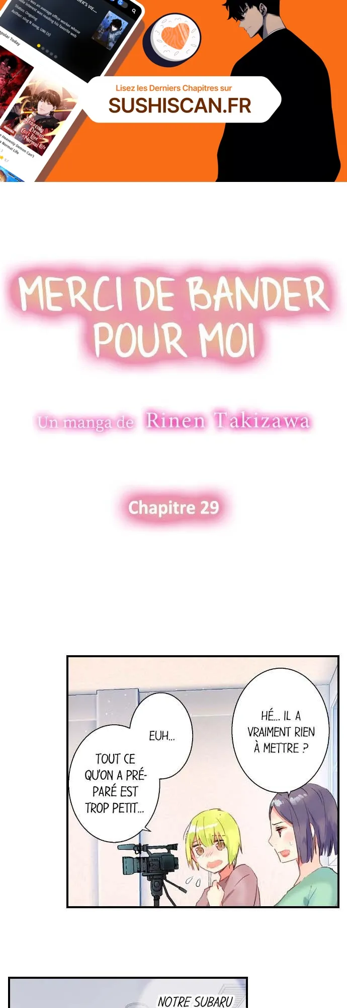 Lisez le dernier manga Merci de bander pour moi Chapitre 29 sur SushiScan. Le manga Merci de bander pour moi est toujours mis à jour sur SushiScan. N'oubliez pas de lire les autres mises à jour de manga. Une liste de collections de manga SushiScan se trouve dans le menu Liste de manga.