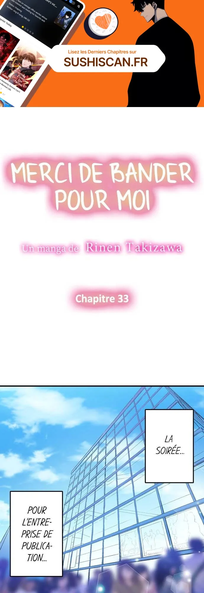 Lisez le dernier manga Merci de bander pour moi Chapitre 33 sur SushiScan. Le manga Merci de bander pour moi est toujours mis à jour sur SushiScan. N'oubliez pas de lire les autres mises à jour de manga. Une liste de collections de manga SushiScan se trouve dans le menu Liste de manga.