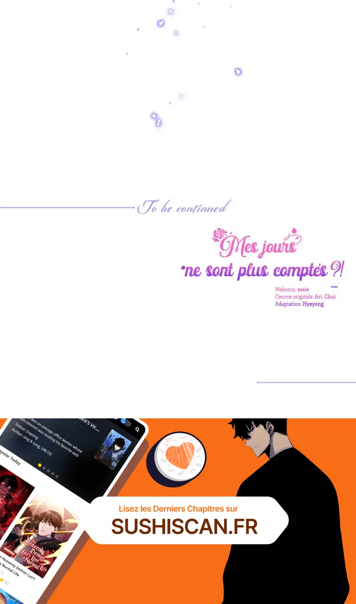 Lisez le dernier manga Mes jours ne sont plus comptés ?! Chapitre 56 sur SushiScan. Le manga Mes jours ne sont plus comptés ?! est toujours mis à jour sur SushiScan. N'oubliez pas de lire les autres mises à jour de manga. Une liste de collections de manga SushiScan se trouve dans le menu Liste de manga.