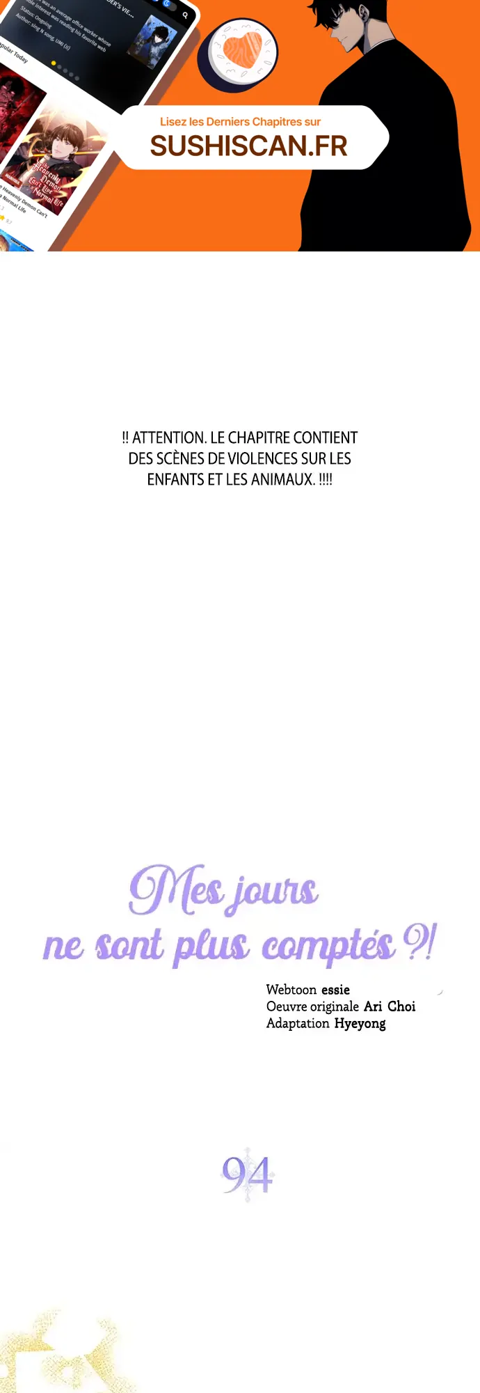 Lisez le dernier manga Mes jours ne sont plus comptés ?! Chapitre 94 sur SushiScan. Le manga Mes jours ne sont plus comptés ?! est toujours mis à jour sur SushiScan. N'oubliez pas de lire les autres mises à jour de manga. Une liste de collections de manga SushiScan se trouve dans le menu Liste de manga.