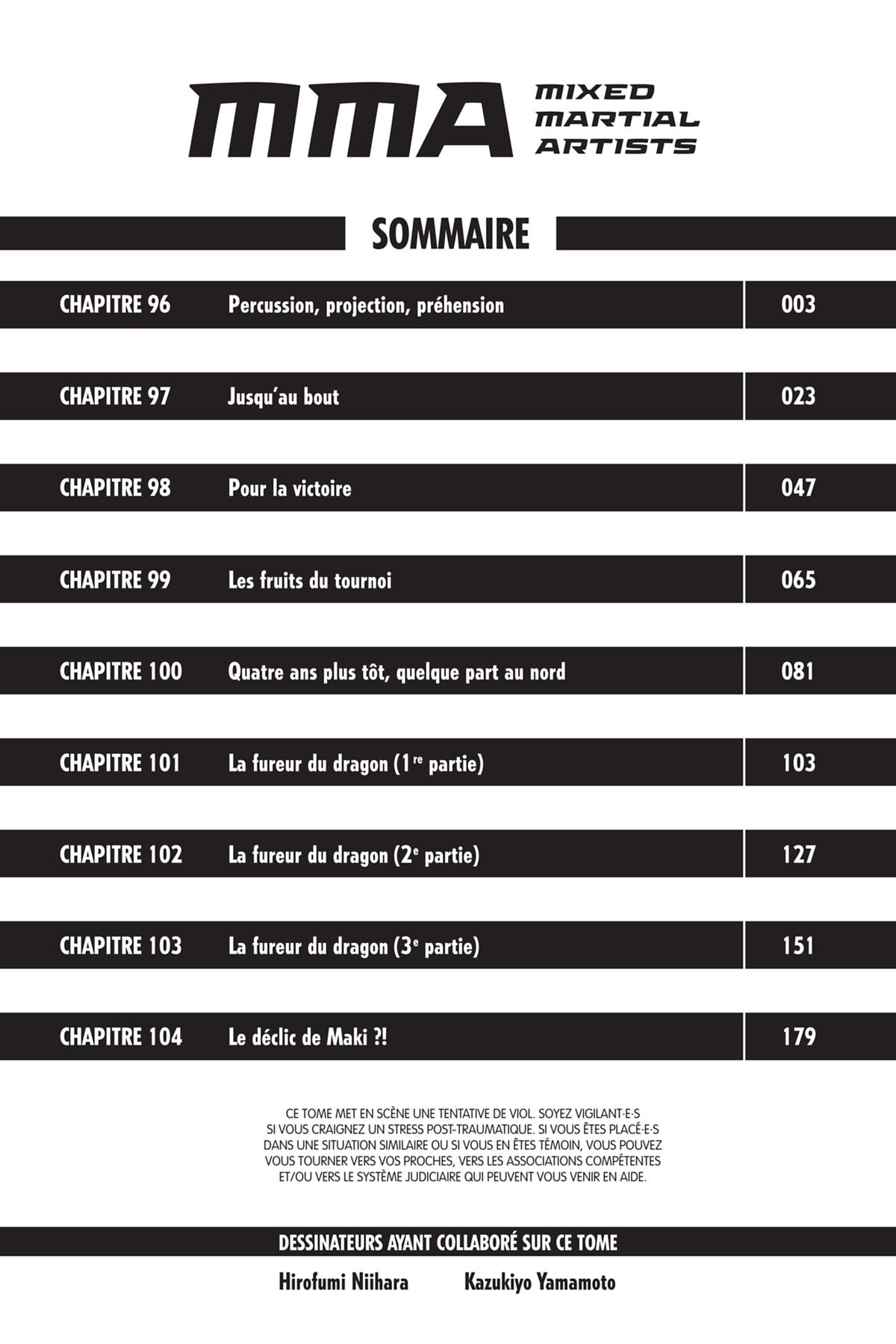 Lisez le dernier manga MMA – Mixed Martial Artists Tome 11 sur SushiScan. Le manga MMA – Mixed Martial Artists est toujours mis à jour sur SushiScan. N'oubliez pas de lire les autres mises à jour de manga. Une liste de collections de manga SushiScan se trouve dans le menu Liste de manga.