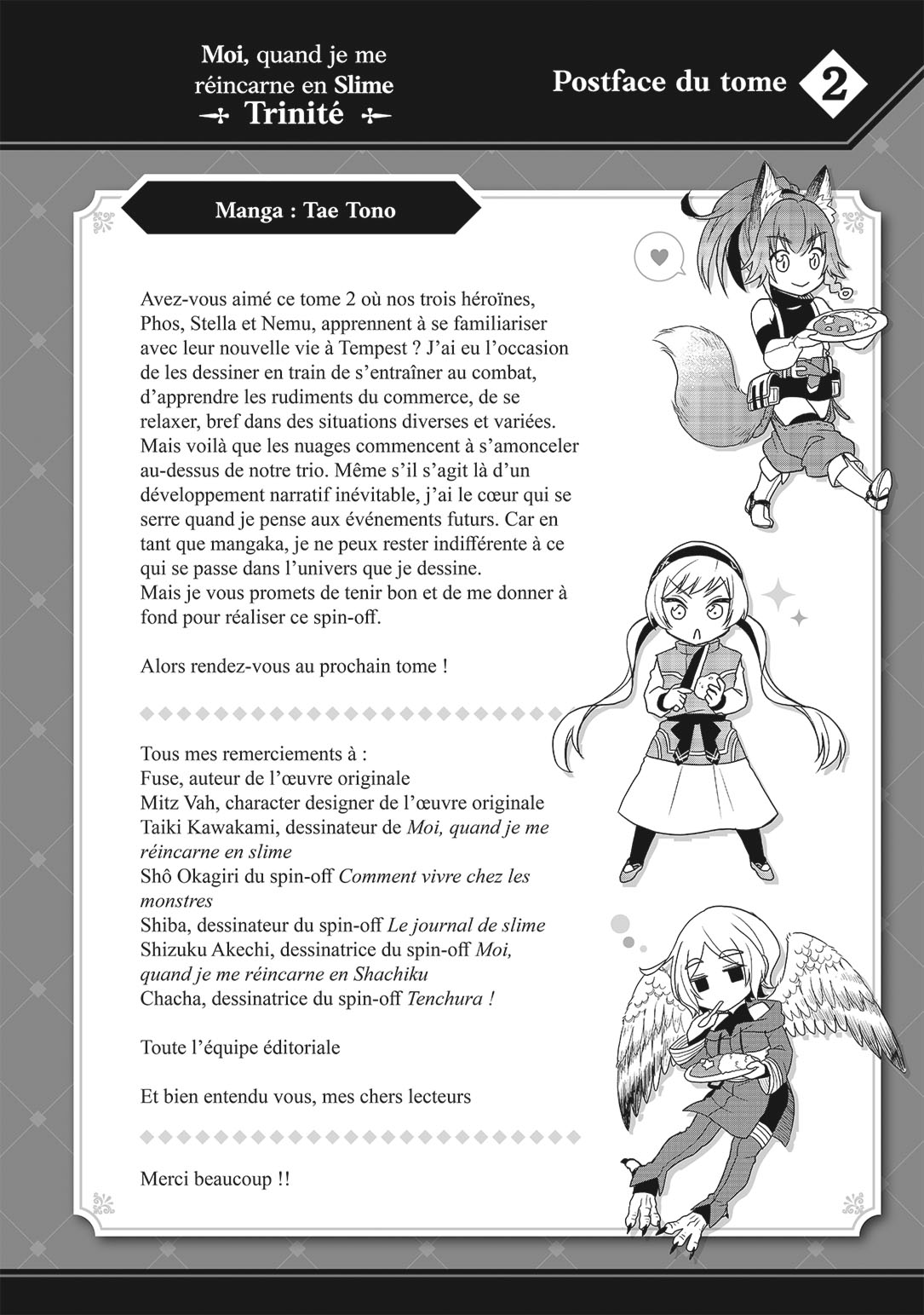 Lisez le dernier manga Moi, quand je me réincarne en Slime – Trinité Volume 2 sur SushiScan. Le manga Moi, quand je me réincarne en Slime – Trinité est toujours mis à jour sur SushiScan. N'oubliez pas de lire les autres mises à jour de manga. Une liste de collections de manga SushiScan se trouve dans le menu Liste de manga.