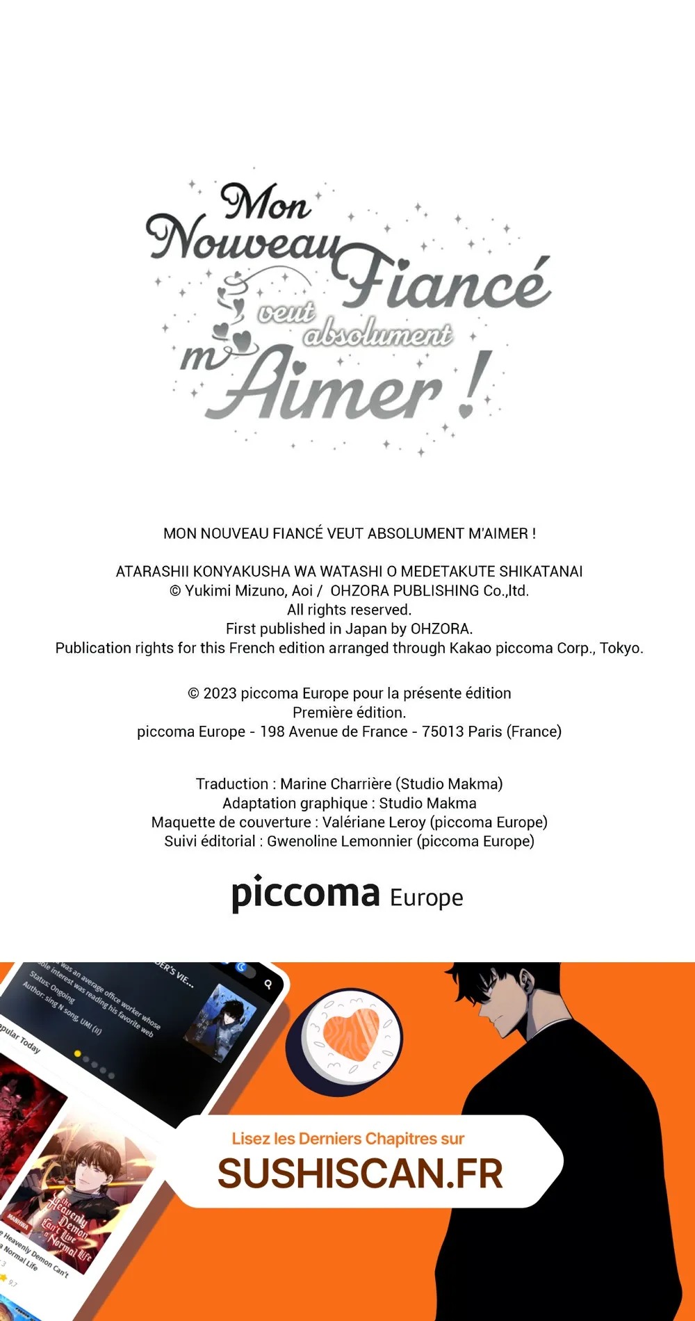 Lisez le dernier manga Mon Nouveau Fiancé veut absolument m’Aimer ! Tome 1 sur SushiScan. Le manga Mon Nouveau Fiancé veut absolument m’Aimer ! est toujours mis à jour sur SushiScan. N'oubliez pas de lire les autres mises à jour de manga. Une liste de collections de manga SushiScan se trouve dans le menu Liste de manga.
