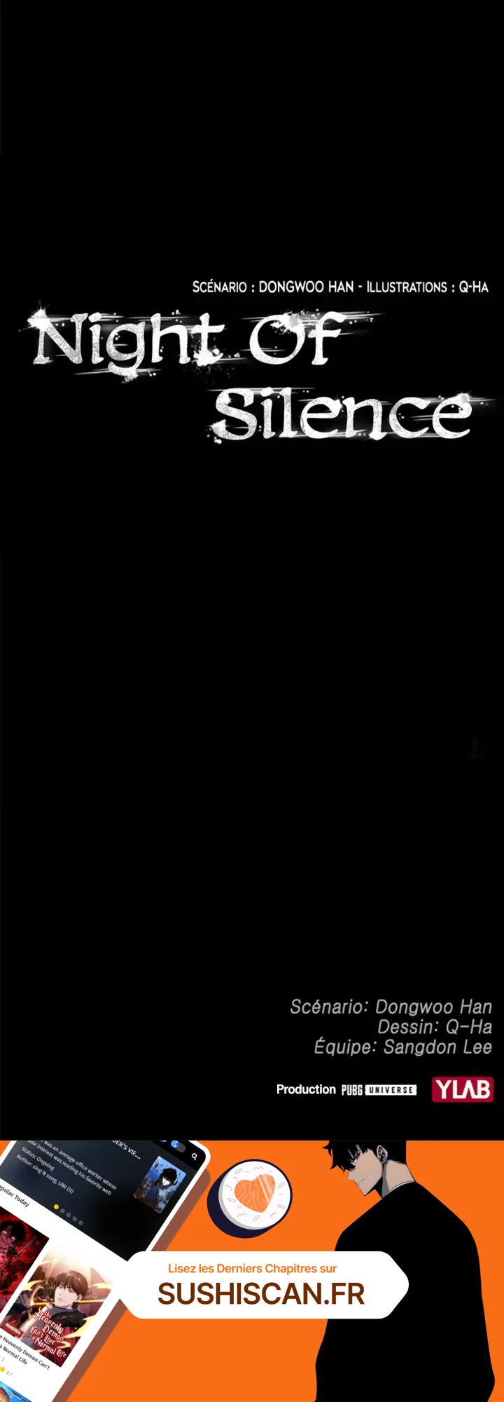 Lisez le dernier manga Night of Silence Chapitre 1 sur SushiScan. Le manga Night of Silence est toujours mis à jour sur SushiScan. N'oubliez pas de lire les autres mises à jour de manga. Une liste de collections de manga SushiScan se trouve dans le menu Liste de manga.