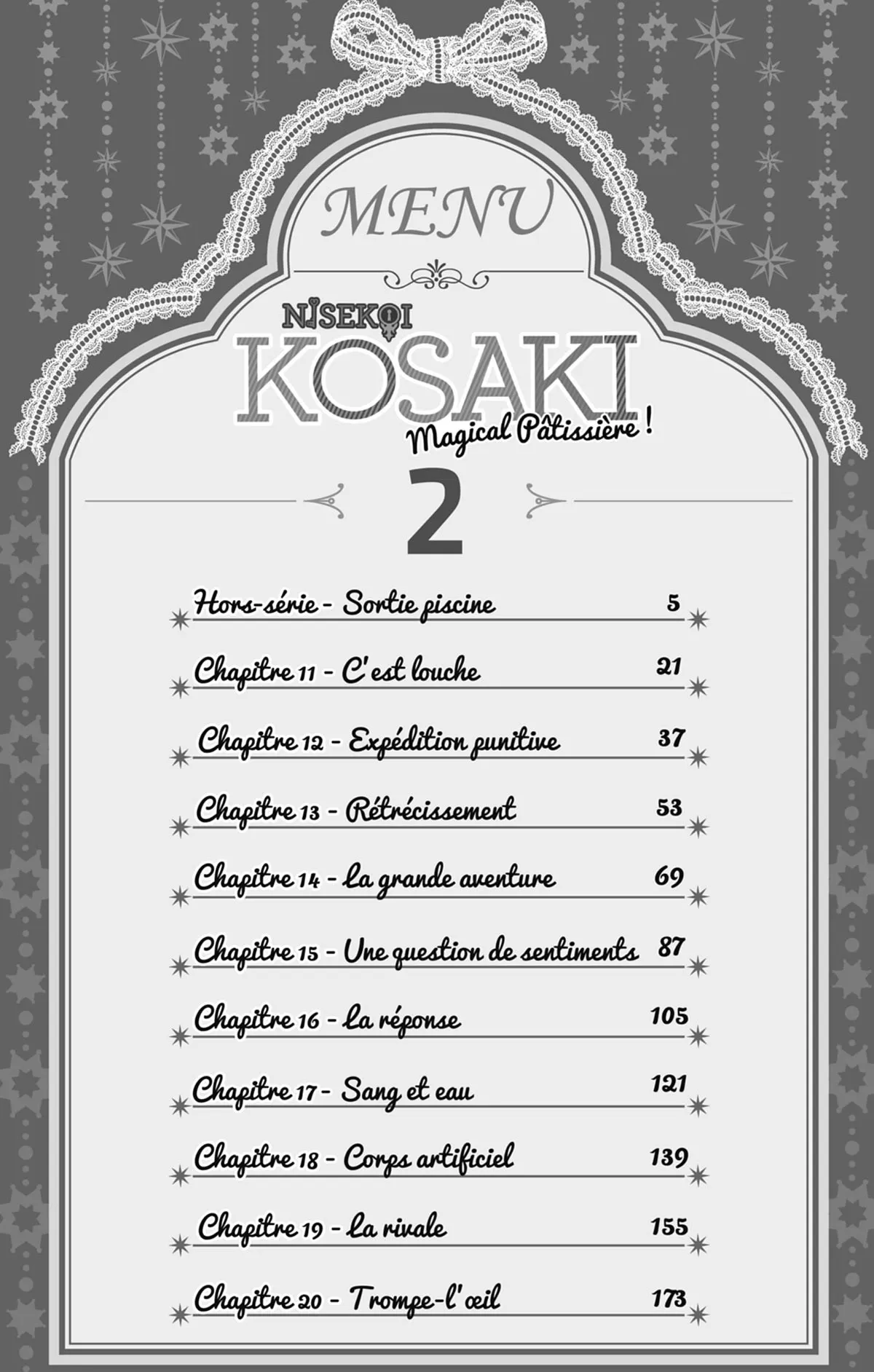 Lisez le dernier manga Nisekoi – Kosaki Magicala Pâtissière ! Tome 2 sur SushiScan. Le manga Nisekoi – Kosaki Magicala Pâtissière ! est toujours mis à jour sur SushiScan. N'oubliez pas de lire les autres mises à jour de manga. Une liste de collections de manga SushiScan se trouve dans le menu Liste de manga.