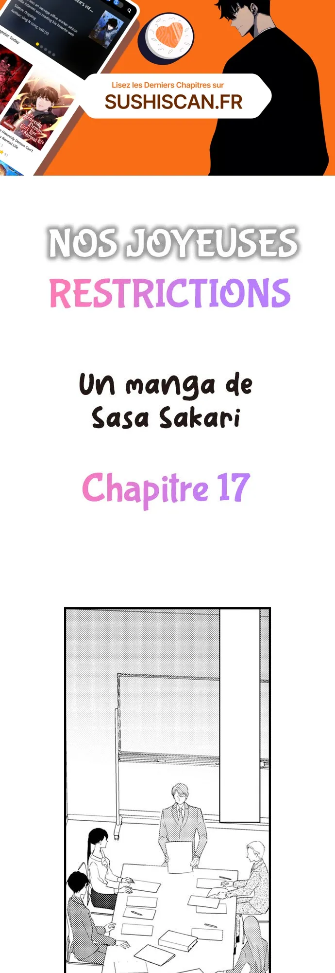 Lisez le dernier manga Nos joyeuses restrictions Chapitre 17 sur SushiScan. Le manga Nos joyeuses restrictions est toujours mis à jour sur SushiScan. N'oubliez pas de lire les autres mises à jour de manga. Une liste de collections de manga SushiScan se trouve dans le menu Liste de manga.