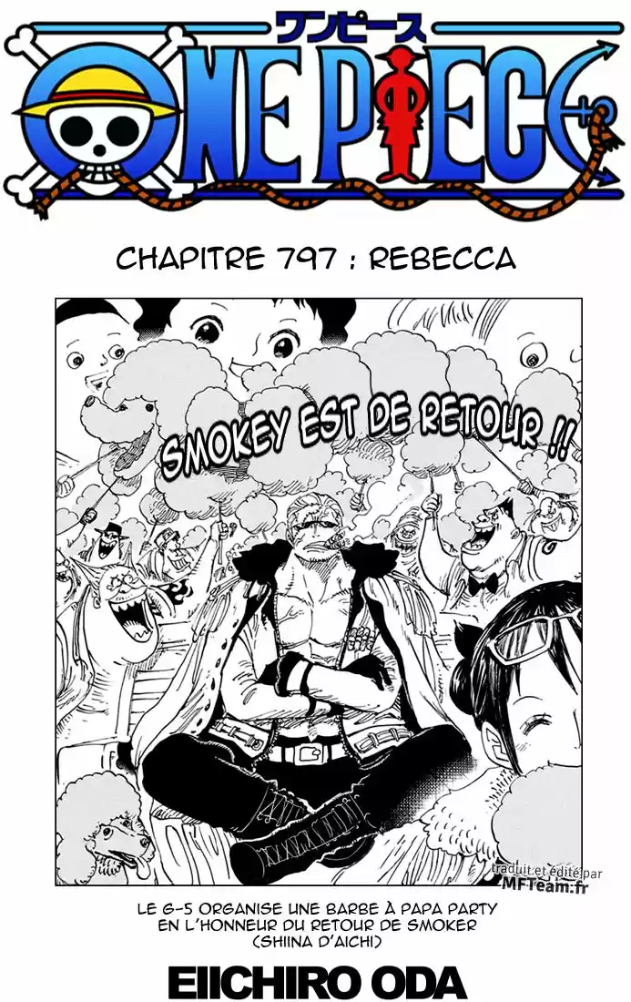 Lisez le dernier manga One Piece Chapitre 797 sur SushiScan. Le manga One Piece est toujours mis à jour sur SushiScan. N'oubliez pas de lire les autres mises à jour de manga. Une liste de collections de manga SushiScan se trouve dans le menu Liste de manga.