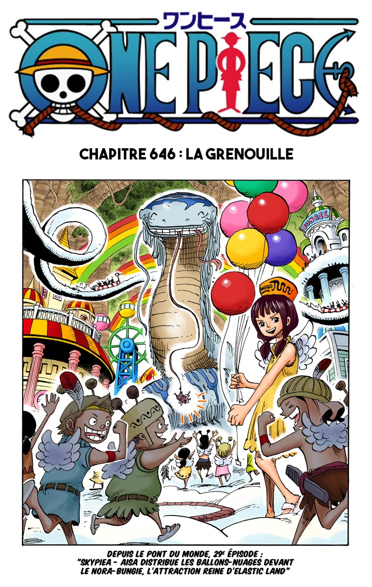 Lisez le dernier manga One Piece Scans Couleur Chapitre 646 sur SushiScan. Le manga One Piece Scans Couleur est toujours mis à jour sur SushiScan. N'oubliez pas de lire les autres mises à jour de manga. Une liste de collections de manga SushiScan se trouve dans le menu Liste de manga.