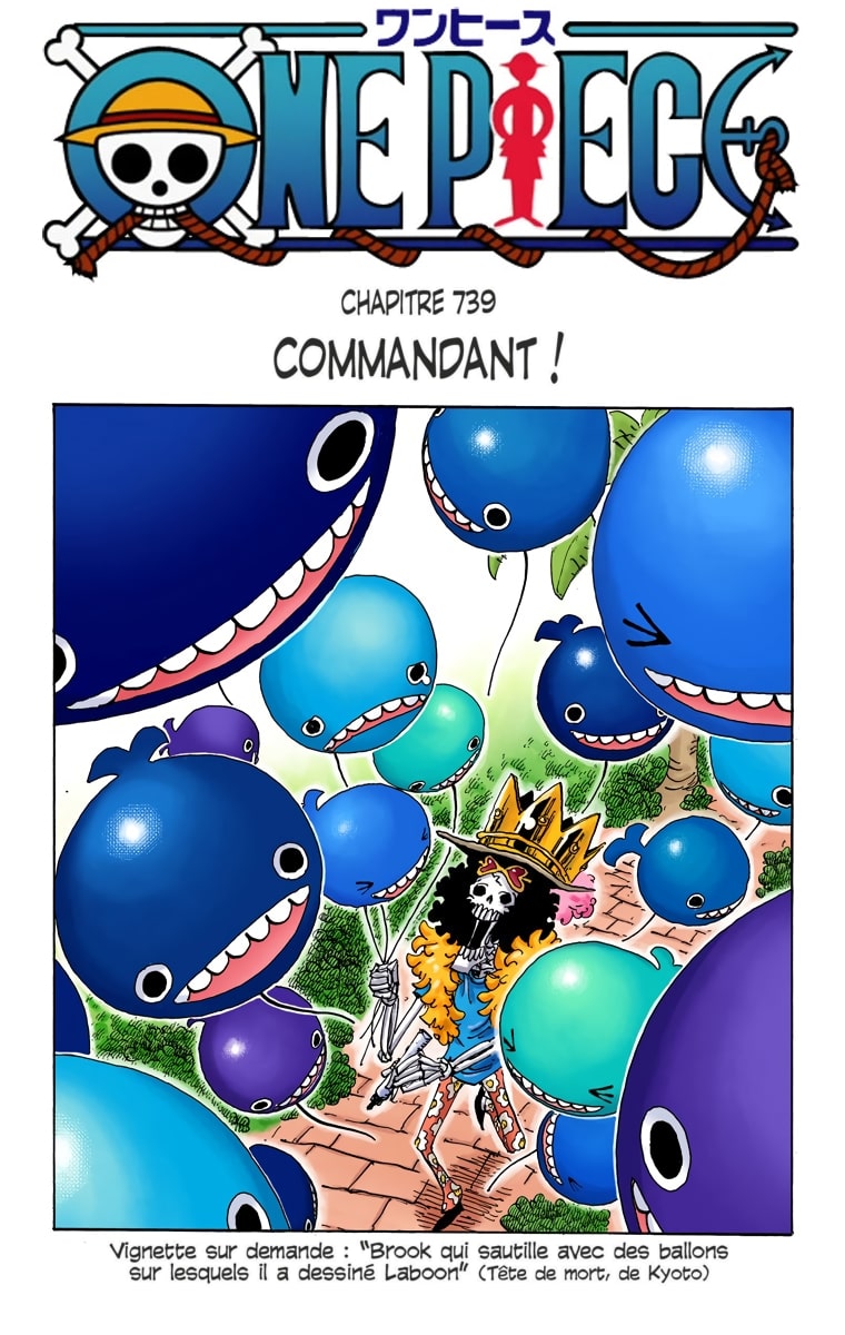 Lisez le dernier manga One Piece Scans Couleur Chapitre 739 sur SushiScan. Le manga One Piece Scans Couleur est toujours mis à jour sur SushiScan. N'oubliez pas de lire les autres mises à jour de manga. Une liste de collections de manga SushiScan se trouve dans le menu Liste de manga.