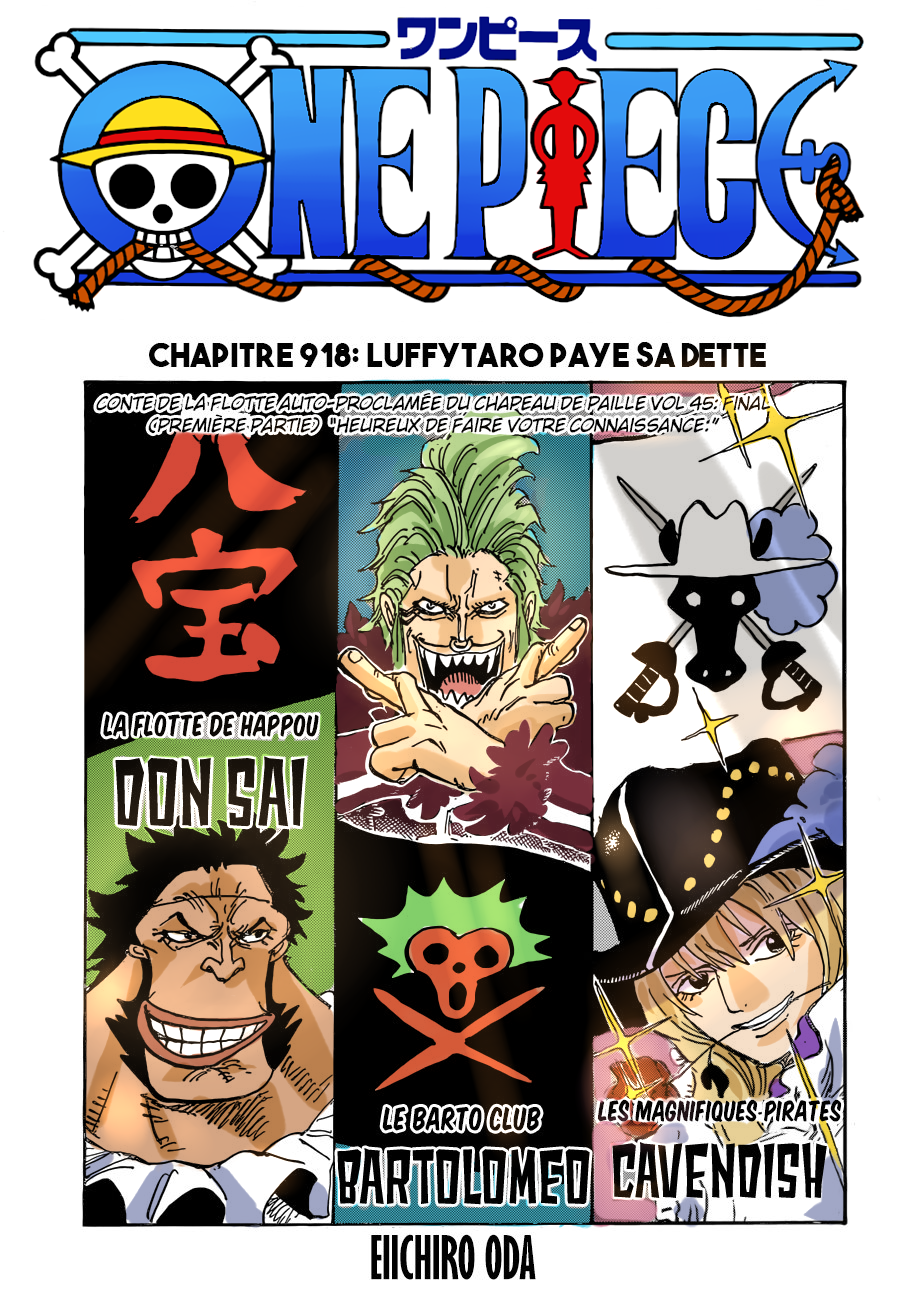Lisez le dernier manga One Piece Scans Couleur Chapitre 918 sur SushiScan. Le manga One Piece Scans Couleur est toujours mis à jour sur SushiScan. N'oubliez pas de lire les autres mises à jour de manga. Une liste de collections de manga SushiScan se trouve dans le menu Liste de manga.