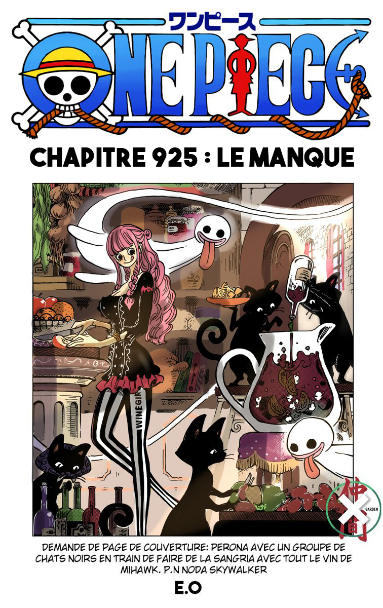 Lisez le dernier manga One Piece Scans Couleur Chapitre 925 sur SushiScan. Le manga One Piece Scans Couleur est toujours mis à jour sur SushiScan. N'oubliez pas de lire les autres mises à jour de manga. Une liste de collections de manga SushiScan se trouve dans le menu Liste de manga.