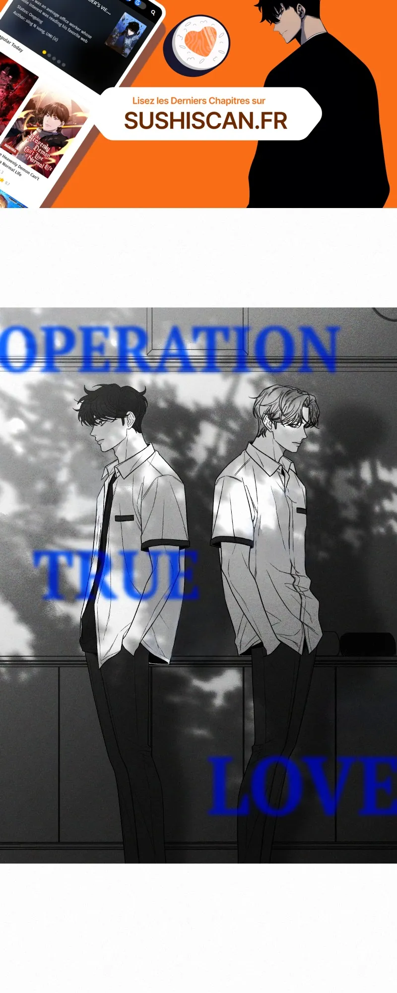 Lisez le dernier manga Operation: True Love Chapitre 79 sur SushiScan. Le manga Operation: True Love est toujours mis à jour sur SushiScan. N'oubliez pas de lire les autres mises à jour de manga. Une liste de collections de manga SushiScan se trouve dans le menu Liste de manga.