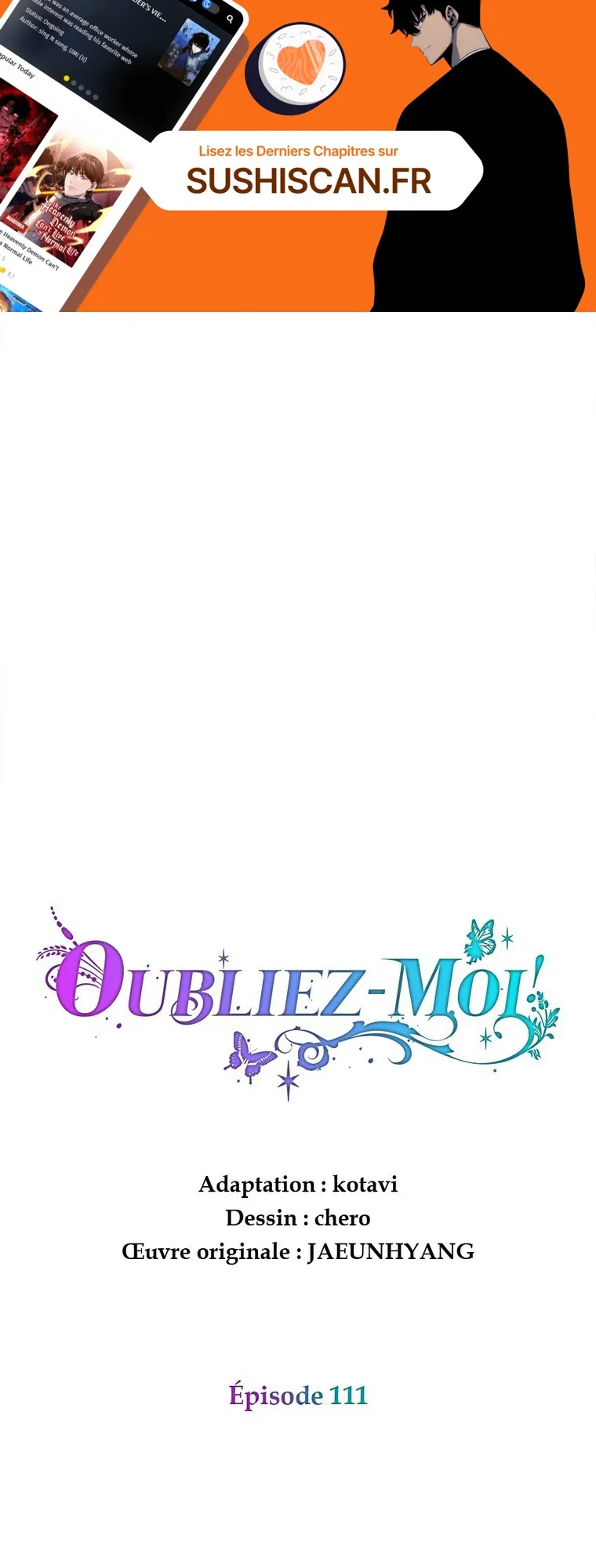 Lisez le dernier manga Oubliez-moi ! Chapitre 111 sur SushiScan. Le manga Oubliez-moi ! est toujours mis à jour sur SushiScan. N'oubliez pas de lire les autres mises à jour de manga. Une liste de collections de manga SushiScan se trouve dans le menu Liste de manga.
