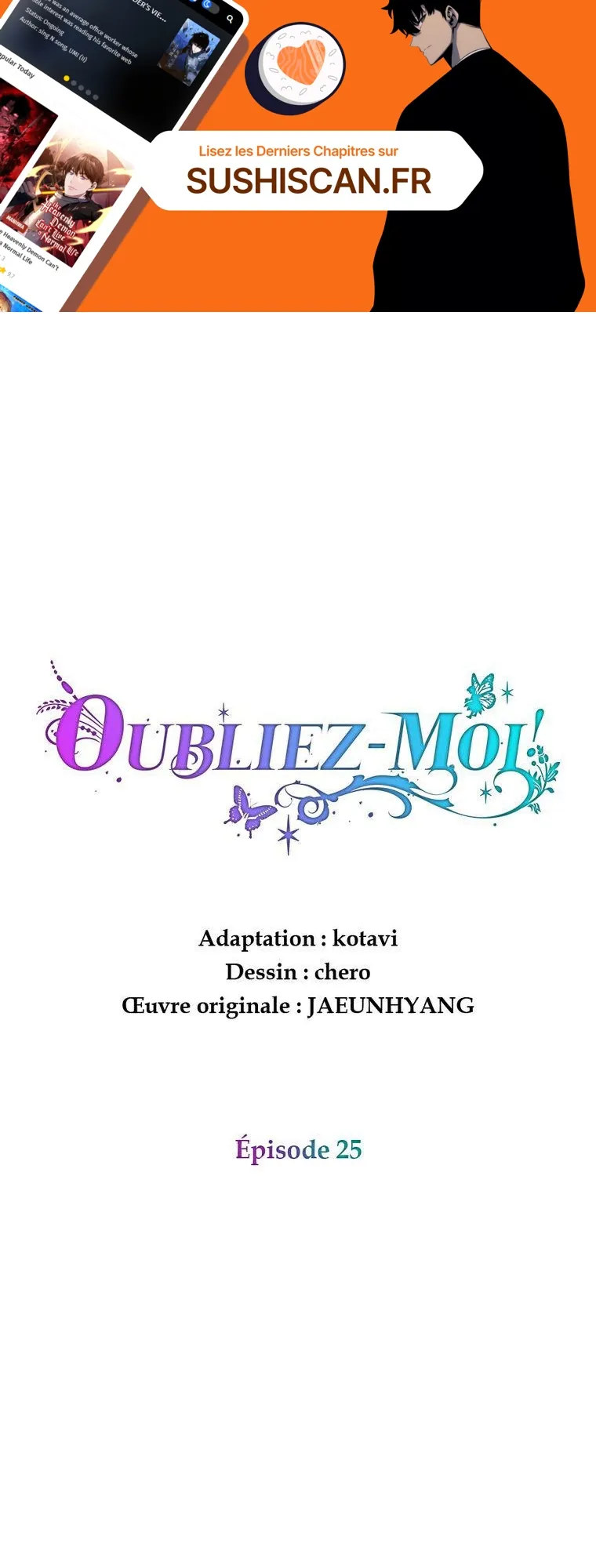 Lisez le dernier manga Oubliez-moi ! Chapitre 25 sur SushiScan. Le manga Oubliez-moi ! est toujours mis à jour sur SushiScan. N'oubliez pas de lire les autres mises à jour de manga. Une liste de collections de manga SushiScan se trouve dans le menu Liste de manga.
