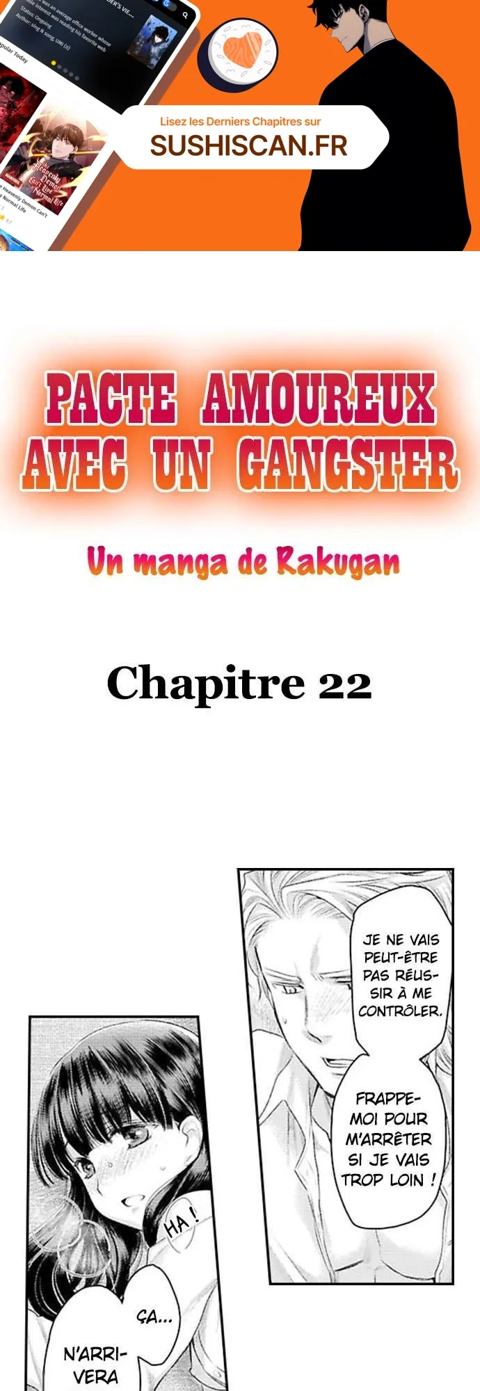 Lisez le dernier manga Pacte amoureux avec un gangster Chapitre 22 sur SushiScan. Le manga Pacte amoureux avec un gangster est toujours mis à jour sur SushiScan. N'oubliez pas de lire les autres mises à jour de manga. Une liste de collections de manga SushiScan se trouve dans le menu Liste de manga.