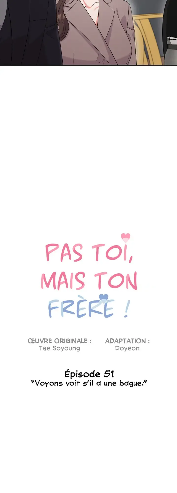 Lisez le dernier manga Pas toi, mais ton frère ! Chapitre 51 sur SushiScan. Le manga Pas toi, mais ton frère ! est toujours mis à jour sur SushiScan. N'oubliez pas de lire les autres mises à jour de manga. Une liste de collections de manga SushiScan se trouve dans le menu Liste de manga.