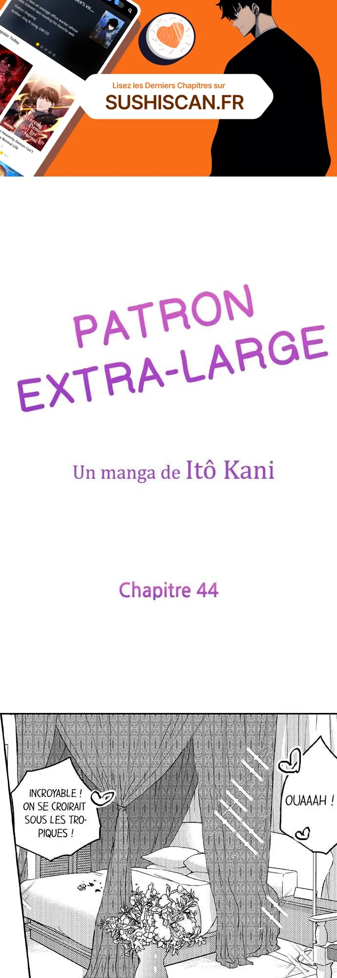 Lisez le dernier manga Patron extra-large Chapitre 44 sur SushiScan. Le manga Patron extra-large est toujours mis à jour sur SushiScan. N'oubliez pas de lire les autres mises à jour de manga. Une liste de collections de manga SushiScan se trouve dans le menu Liste de manga.