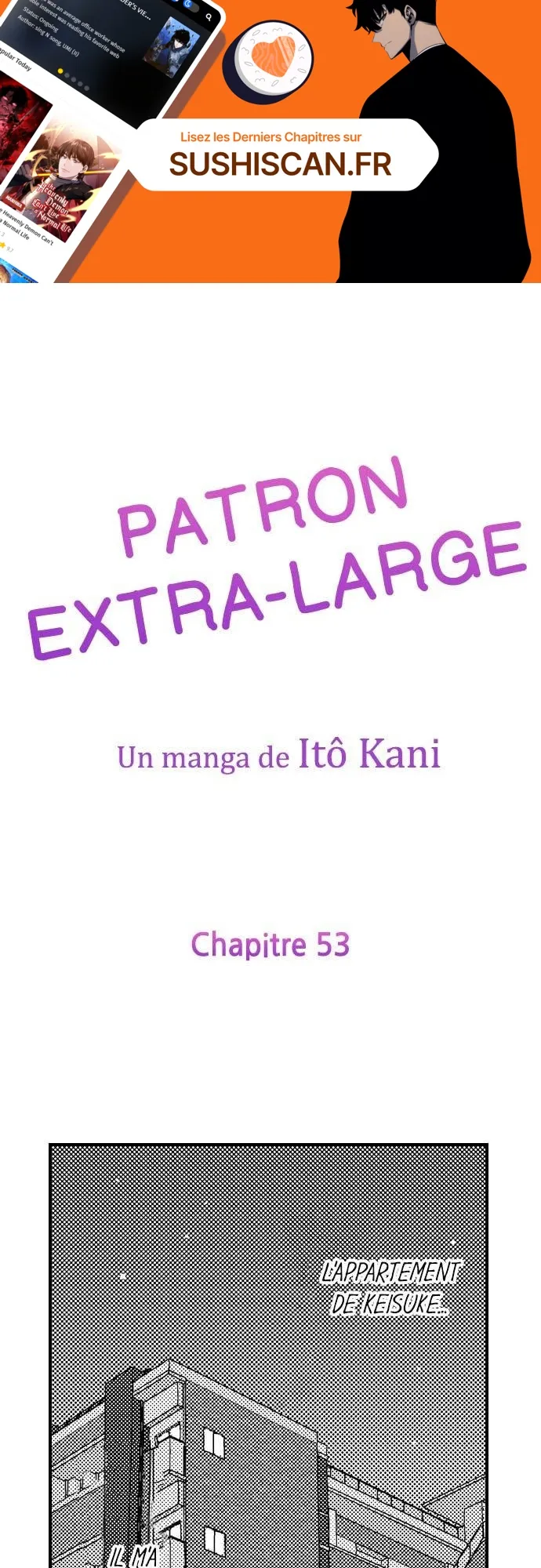 Lisez le dernier manga Patron extra-large Chapitre 53 sur SushiScan. Le manga Patron extra-large est toujours mis à jour sur SushiScan. N'oubliez pas de lire les autres mises à jour de manga. Une liste de collections de manga SushiScan se trouve dans le menu Liste de manga.