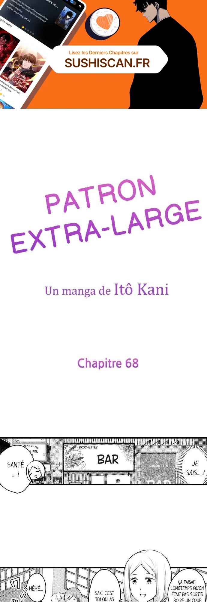 Lisez le dernier manga Patron extra-large Chapitre 68 sur SushiScan. Le manga Patron extra-large est toujours mis à jour sur SushiScan. N'oubliez pas de lire les autres mises à jour de manga. Une liste de collections de manga SushiScan se trouve dans le menu Liste de manga.