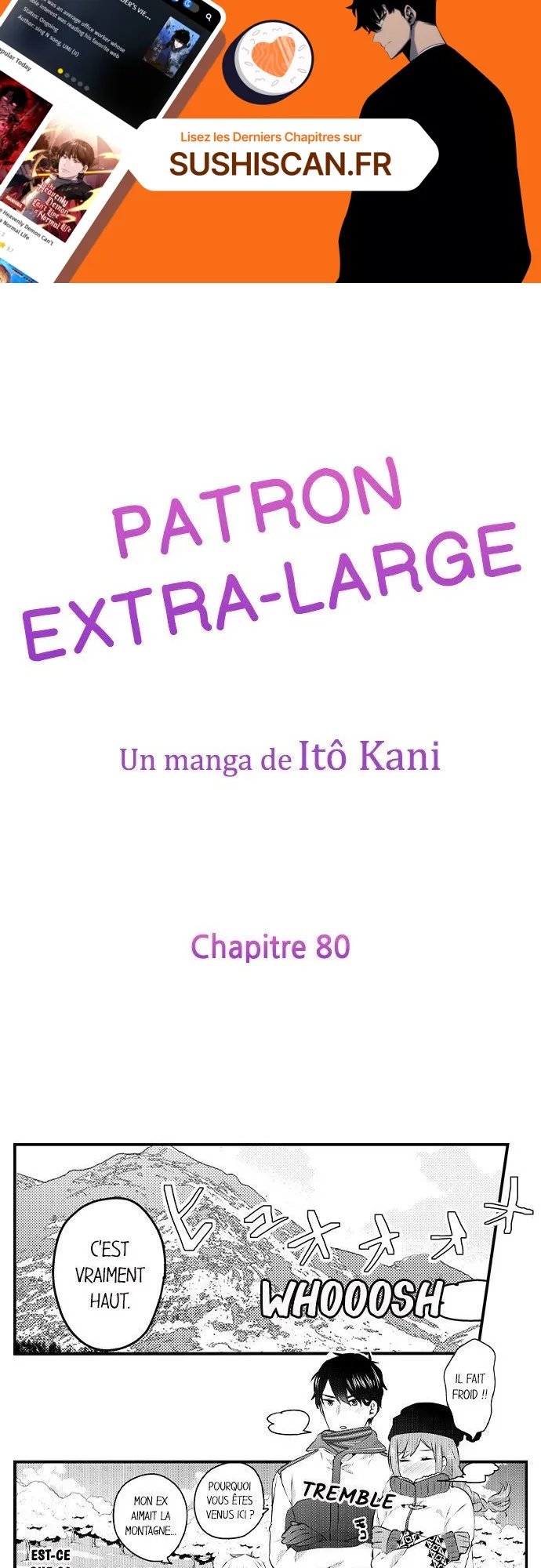 Lisez le dernier manga Patron extra-large Chapitre 80 sur SushiScan. Le manga Patron extra-large est toujours mis à jour sur SushiScan. N'oubliez pas de lire les autres mises à jour de manga. Une liste de collections de manga SushiScan se trouve dans le menu Liste de manga.
