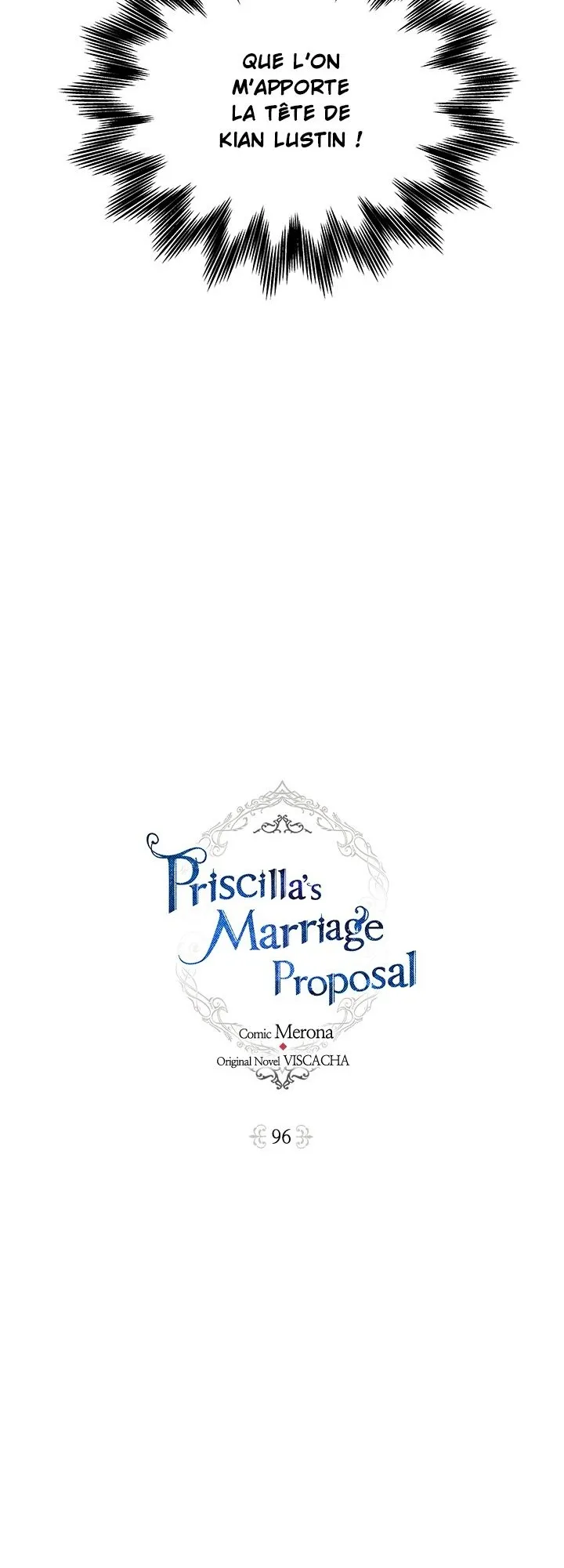 Lisez le dernier manga Priscilla’s Marriage Proposal Chapitre 96 sur SushiScan. Le manga Priscilla’s Marriage Proposal est toujours mis à jour sur SushiScan. N'oubliez pas de lire les autres mises à jour de manga. Une liste de collections de manga SushiScan se trouve dans le menu Liste de manga.