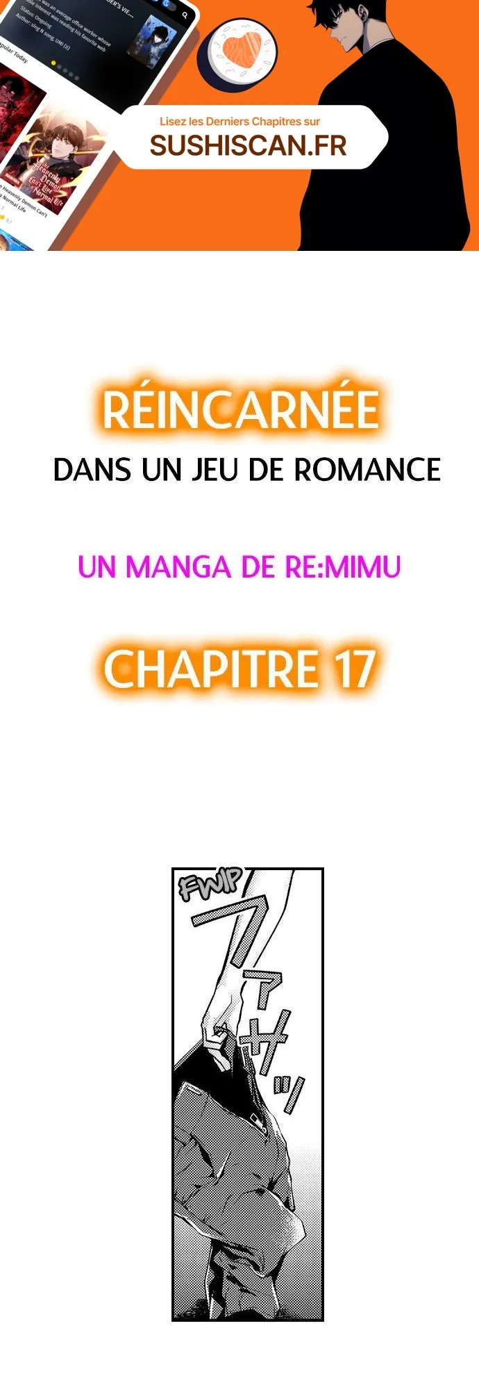 Lisez le dernier manga Réincarnée dans un jeu de romance Chapitre 17 sur SushiScan. Le manga Réincarnée dans un jeu de romance est toujours mis à jour sur SushiScan. N'oubliez pas de lire les autres mises à jour de manga. Une liste de collections de manga SushiScan se trouve dans le menu Liste de manga.